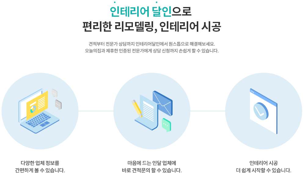 단순한 인테리어 중개 서비스가 아닌 인테리어의 시작부터 끝까지
