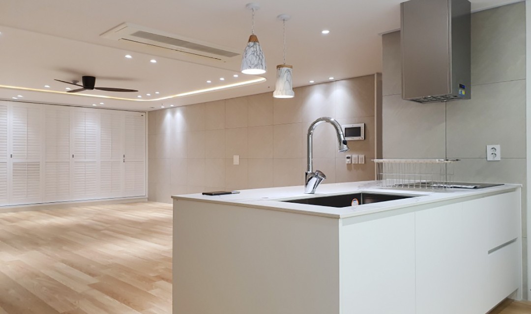 #고급 #세미클래식 #모던 #심플 #벽돌 #화이트 #중문 #아일랜드주방 #벽등 #간접조명 #실링팬 #40평 #아파트인테리어