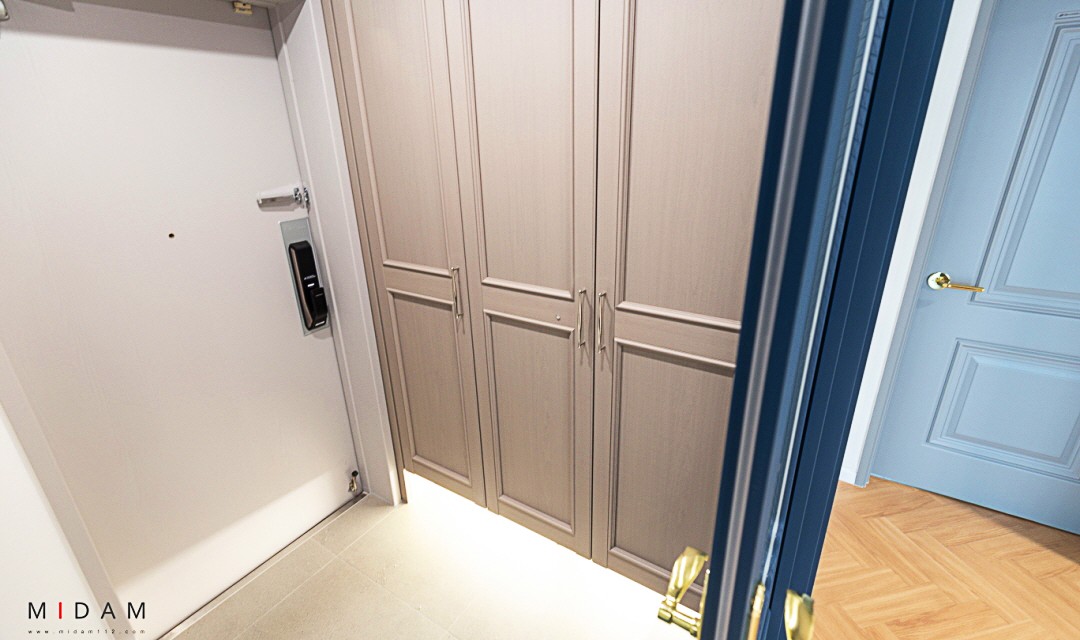 #모던 #클래식 #트렌디 #유럽풍 #중문시공 #타일시공 #벽등 #인테리어조명 #매립조명 #간접조명 #헤링본마루 #웨인스코팅 #골드 #비비드컬러 #40평 #아파트인테리어