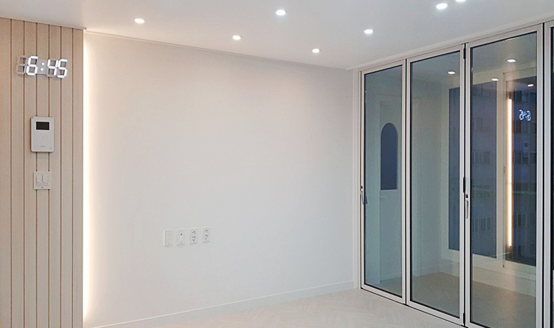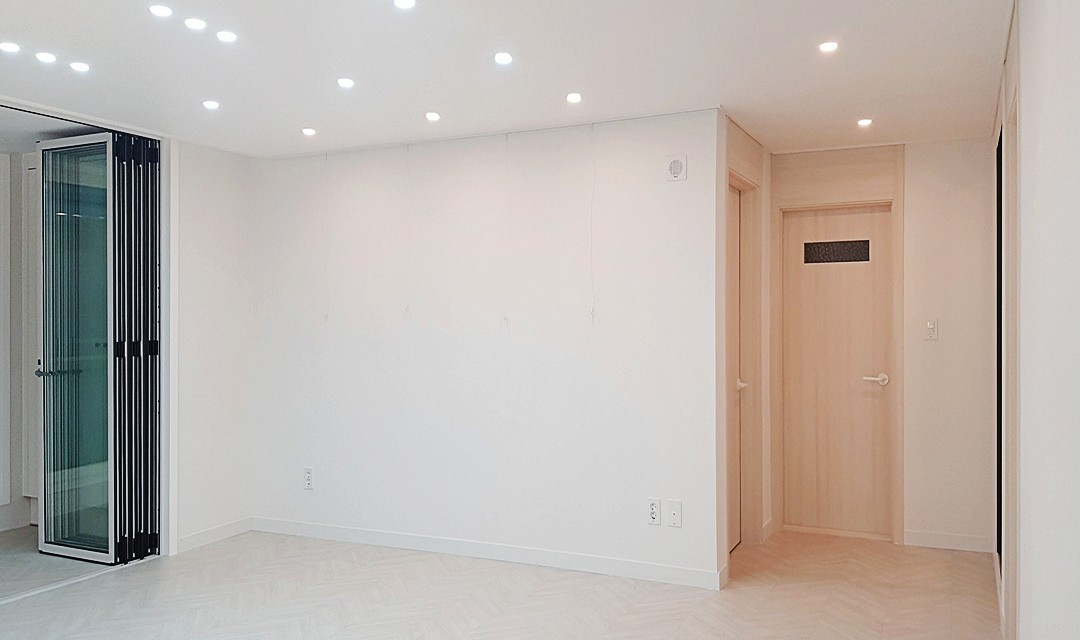 #모던 #트렌디 #심플 #세련된 #필름시공 #행잉형신발장 #화이트 #베이지 #골드 #중문 #3연동슬라이딩도어 #폴딩도어 #우드아트월 #헤링본장판 #마블화이트타일 #30평 #아파트인테리어