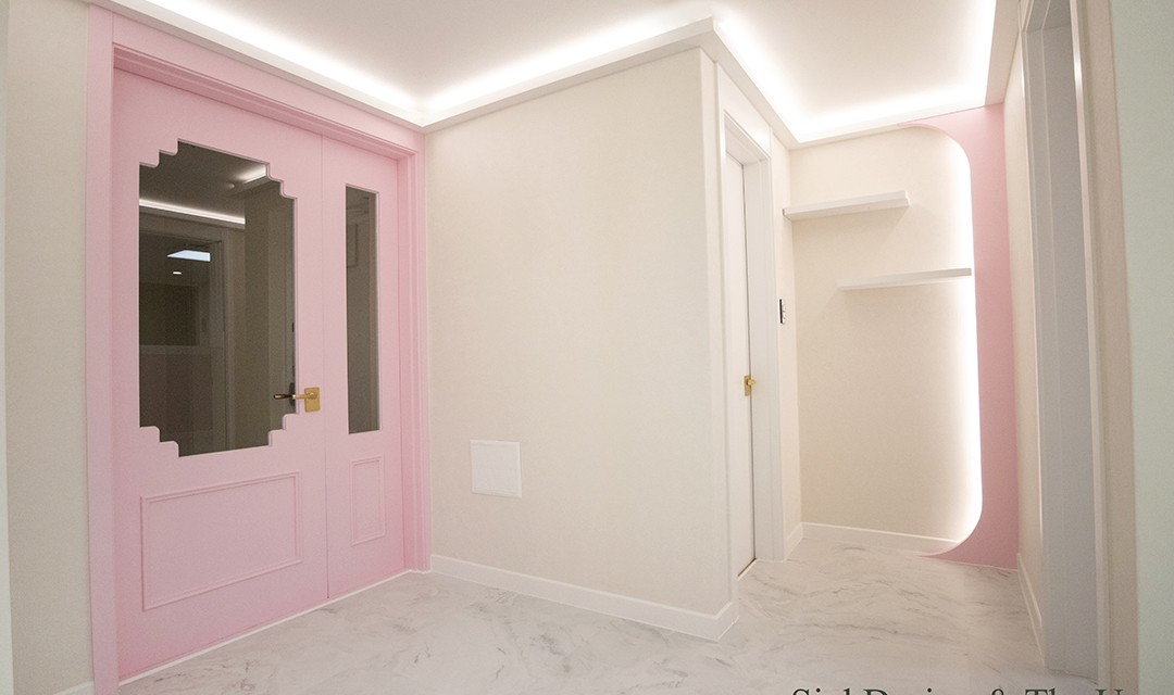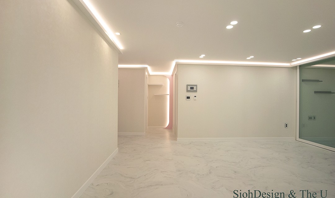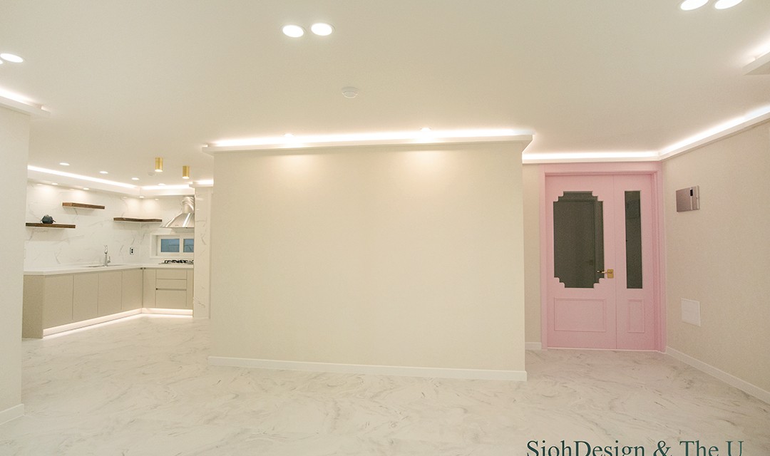 #모던 #심플 #깨끗한 #화사한 #확장공사 #실크도배 #합지도배 #화이트 #샌드그레이 #핑크 #중문 #비대칭여닫이 #장판 #간접조명 #매립조명 #30평 #아파트인테리어