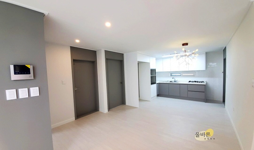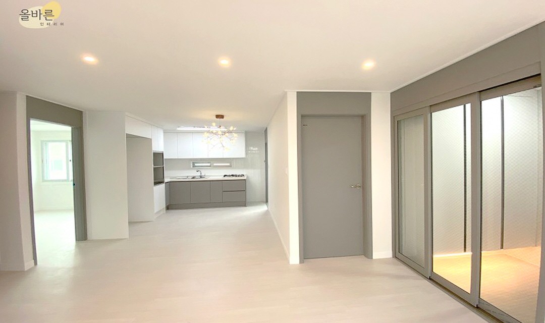 #모던 #트렌디 #네추럴 #심플 #중문시공 #3중연동 #타일시공 #스트레이트셋 #포세린타일 #인테리어조명 #매립조명 #간접조명 #라운드포인테 #화이트 #그레이 #20평 #아파트인테리어