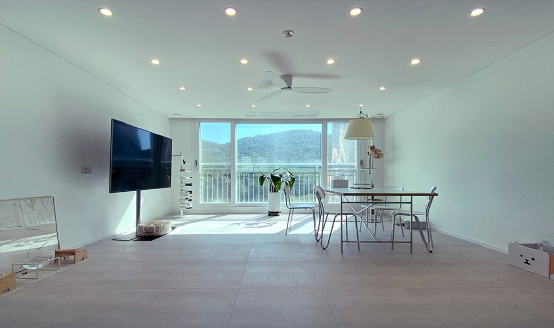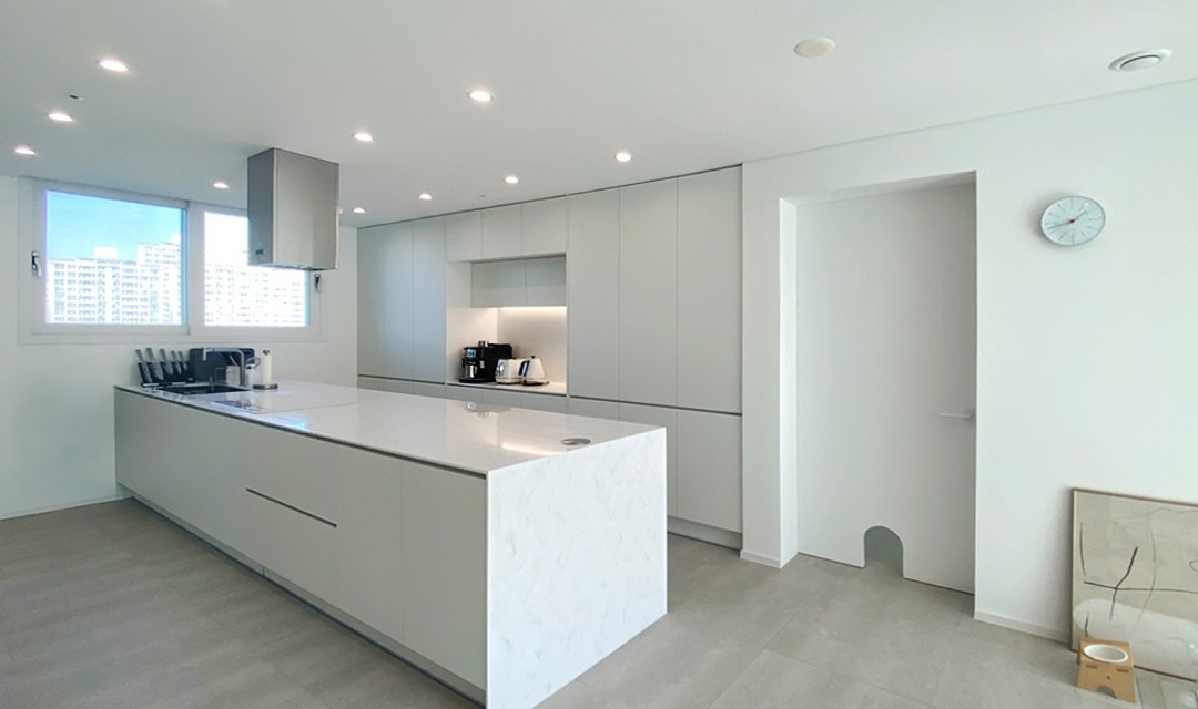 #모던 #심플 #고급 #공간감 #행잉형신발장 #화이트 #아일랜드주방 #포세린타일 #펫도어 #매립조명 #간접조명 #펜던트조명 #실링팬 #40평 #아파트인테리어