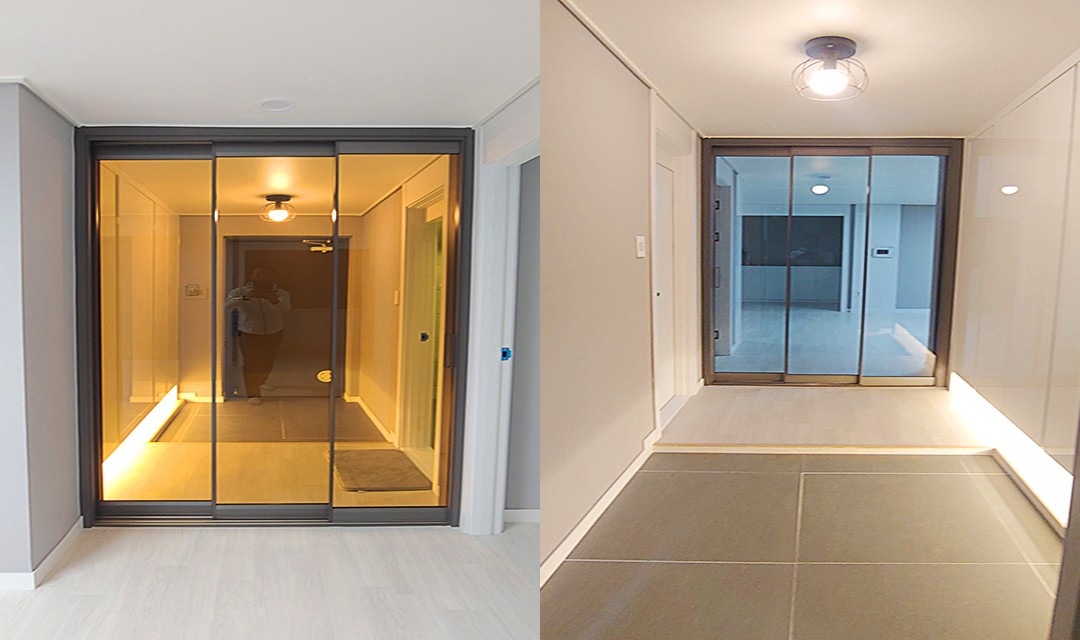 #심플 #모던 #트렌디 #중문시공 #3중연동 #타일시공 #가벽설치 #필름시공 #화이트 #블랙 #30평 #아파트인테리어