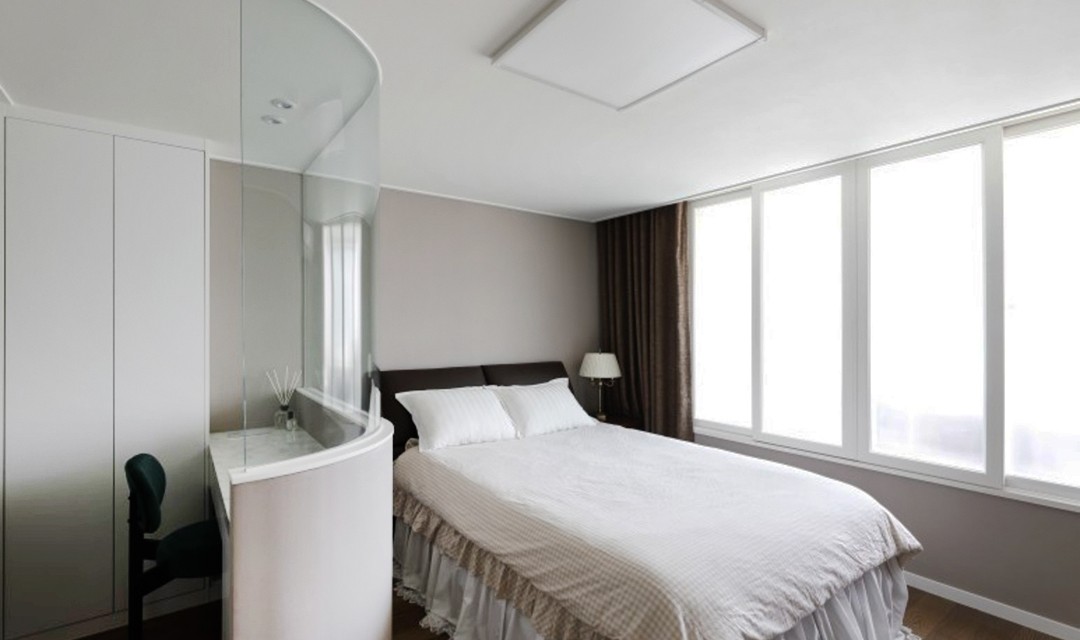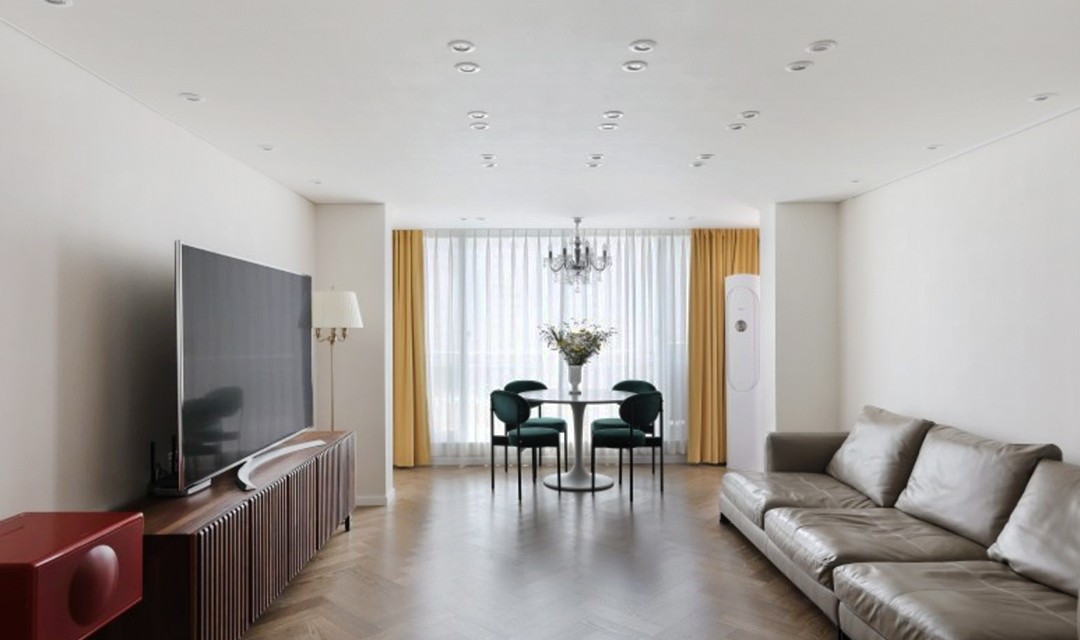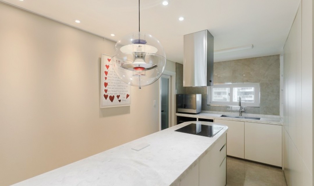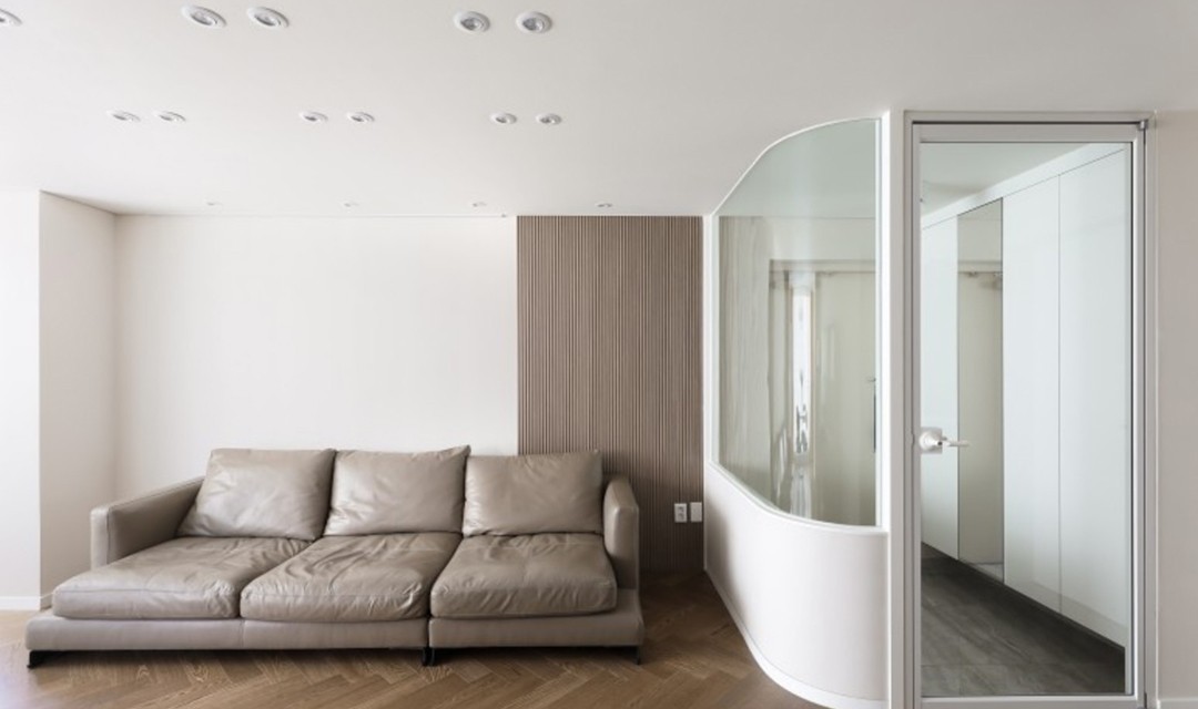 #모던 #고급 #개방감 #라운드마감 #중문 #여닫이중문 #중문파티션 #아일랜드주방 #헤링본 #타일 #매립조명 #샹들리에 #20평 #아파트인테리어