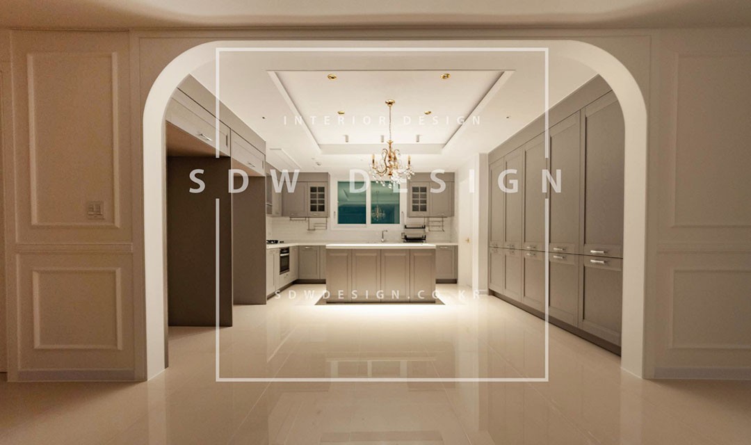 #고급 #럭셔리 #유럽풍 #뉴클래식 #도배 #목공사 #무몰딩 #웨인스코팅 #아치 #화이트 #베이지 #골드 #퍼플 #그린 #폴리싱타일 #실링팬 #간접조명 #매입조명 #샹들리에 #벽등 #50평 #아파트인테리어