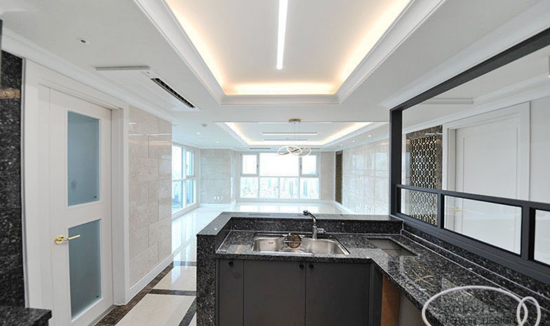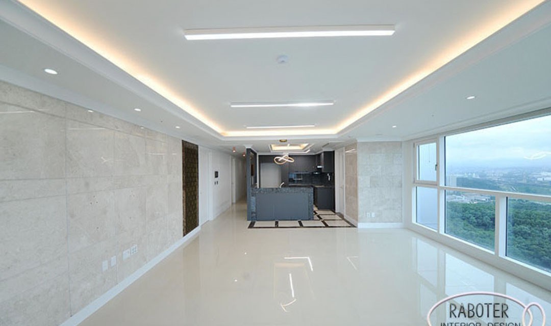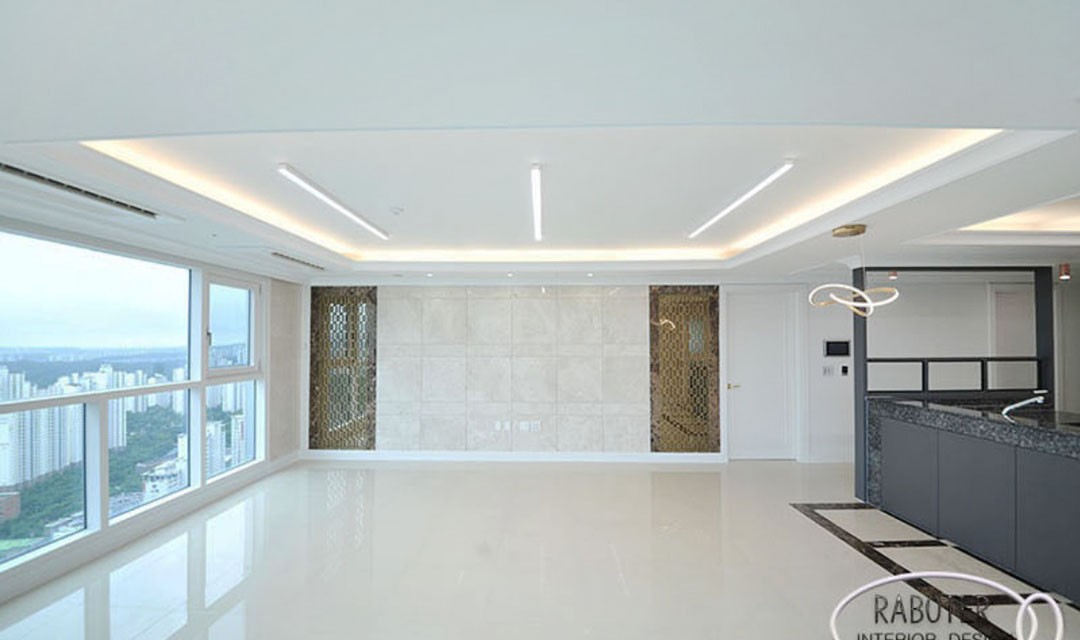 #모던 #뉴클래식 #고급 #따뜻한 #화이트 #그레이 #골드 #중문 #대칭양개도어 #폴리싱타일 #포세린타일 #간접조명 #원형직부등 #40평 #아파트인테리어