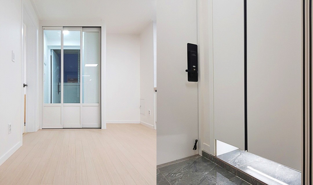 #심플 #모던 #트렌디 #중문시공 #3중연동 #타일시공 #폴리싱타일 #강마루시공 #실크도배 #필름시공 #20평 #아파트인테리어