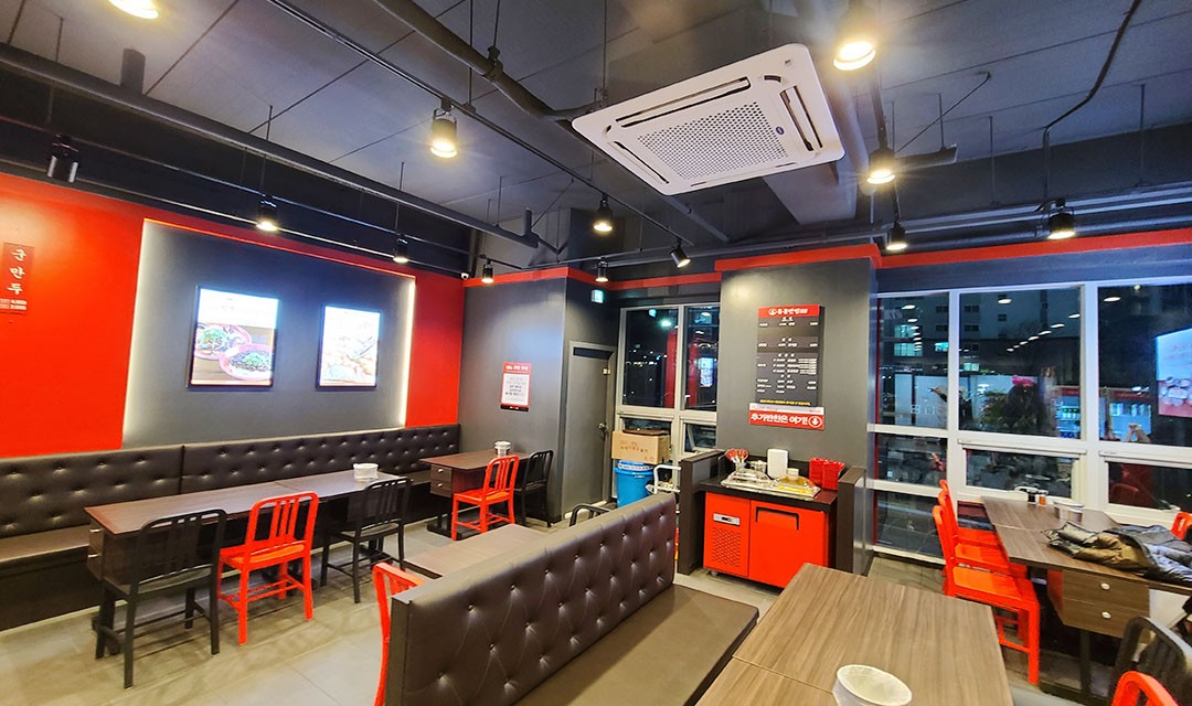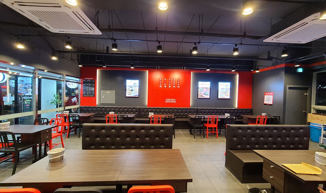 #모던 #세련 #깔끔한 #실용적 #우드 #블랙 #레드 #라이트브라운 #타일 #레일조명 #간접조명 #30평 #프랜차이즈인테리어 #중식당인테리어 #식당인테리어 #레스토랑인테리어