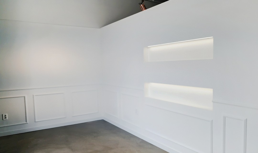 #고급 #뉴클래식 #웨인스코팅 #페인트시공 #아치 #화이트 #브라운 #투명에폭시 #레일조명 #간접조명 #10평 #상가인테리어 #피부관리샵인테리어 #뷰티샵인테리어