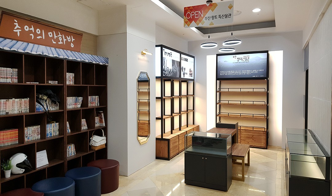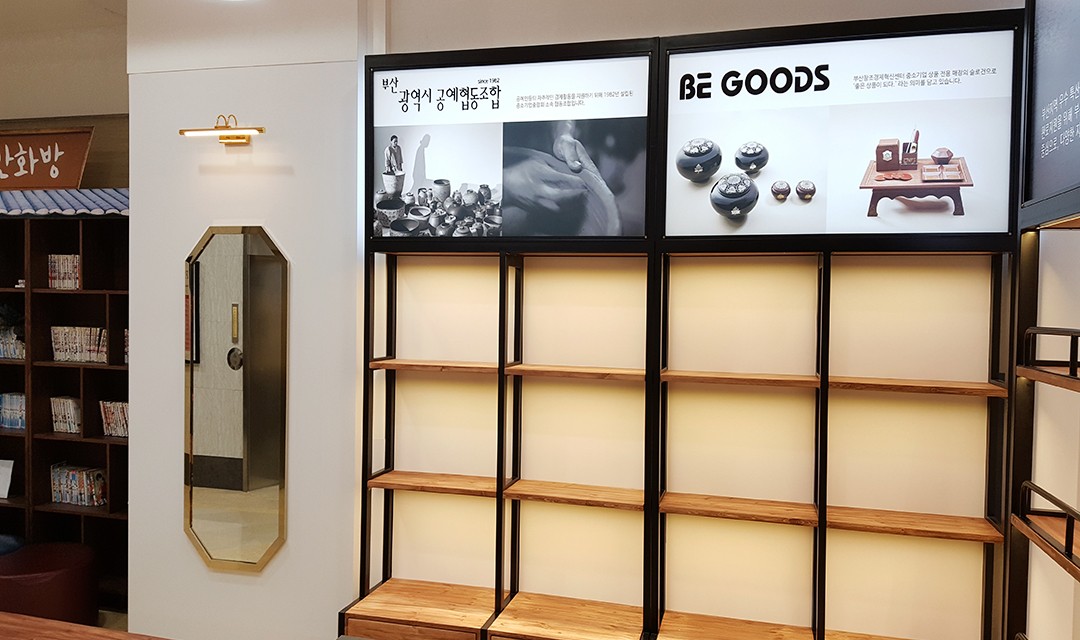#모던 #동양풍 #클래식 #세련 #우드 #화이트 #폴리싱타일 #포인트조명 #벽등 #간접조명 #제작가구 #상가인테리어 #백화점상가인테리어 #특산물매장인테리어 #매장인테리어
