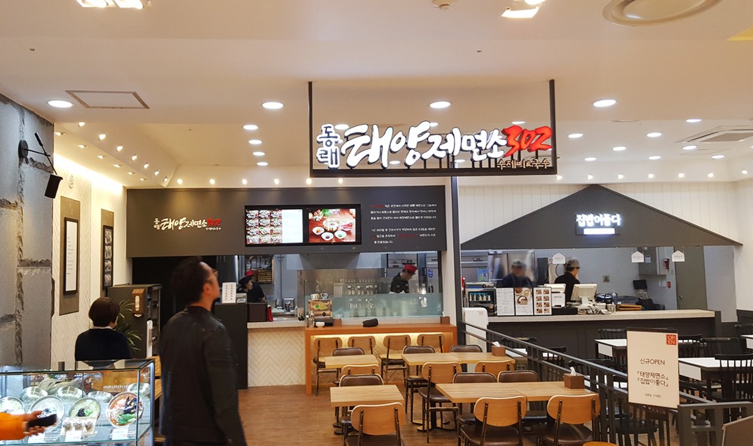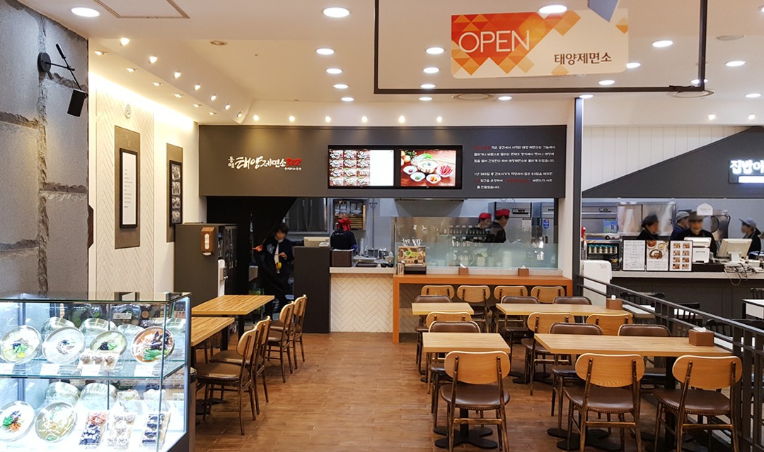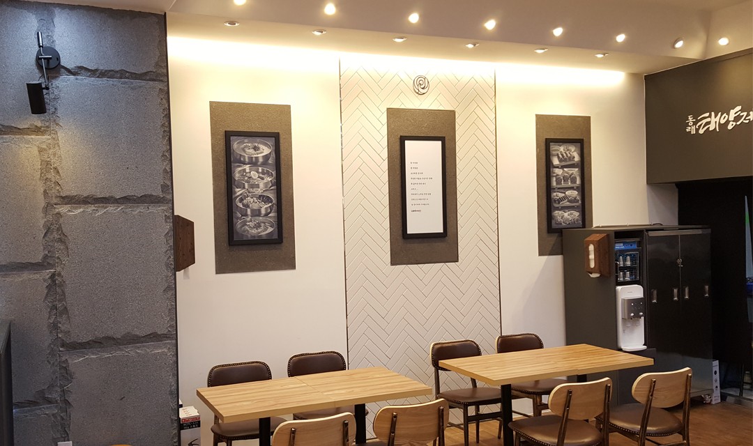 #모던 #따뜻한 #세련된 #우드 #라이트브라운 #블랙 #화이트 #헤링본타일 #벽돌타일 #간접조명 #매립조명 #벽등 #상가인테리어 #식당인테리어 #백화점상가인테리어 #분식점인테리어