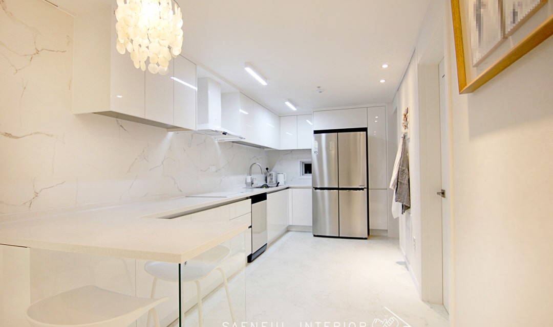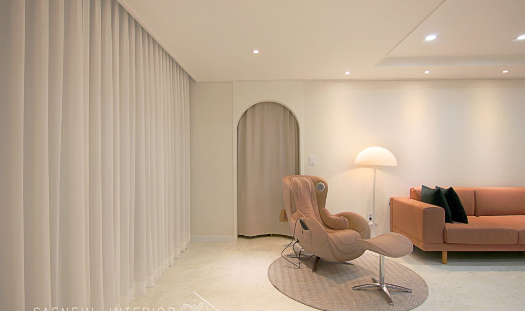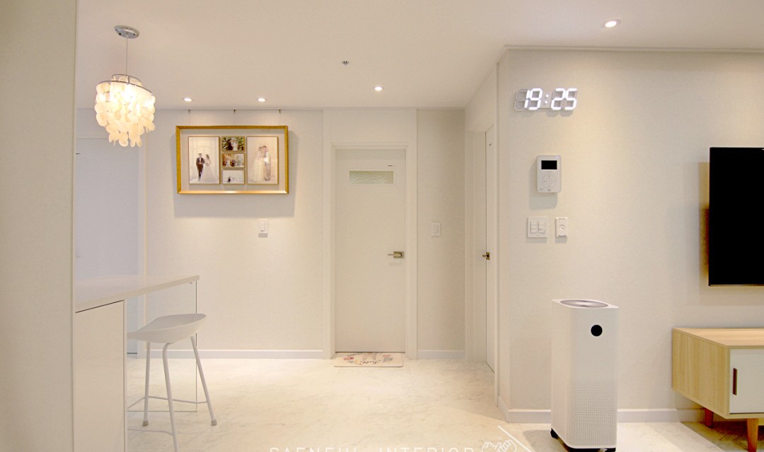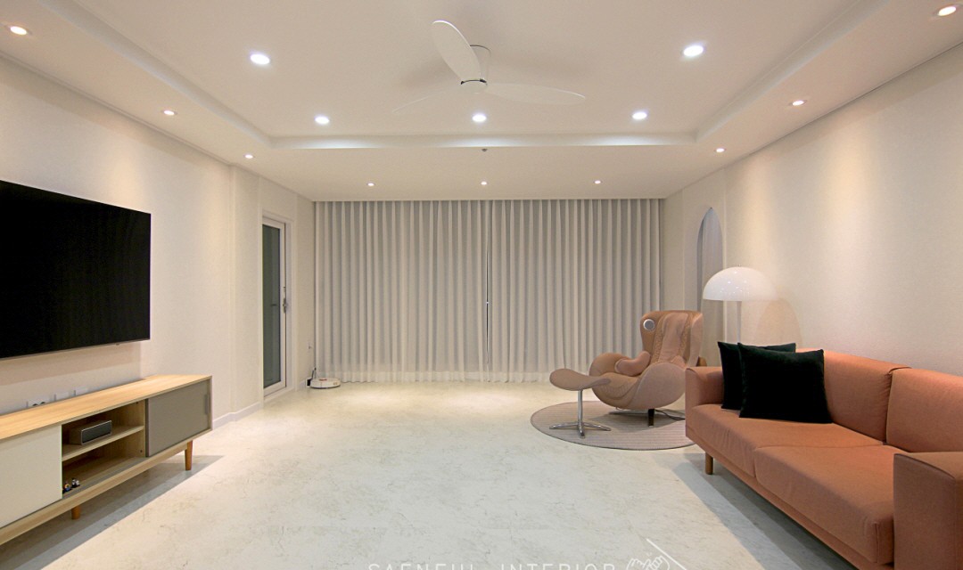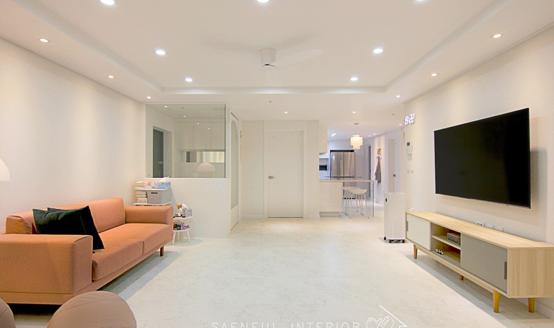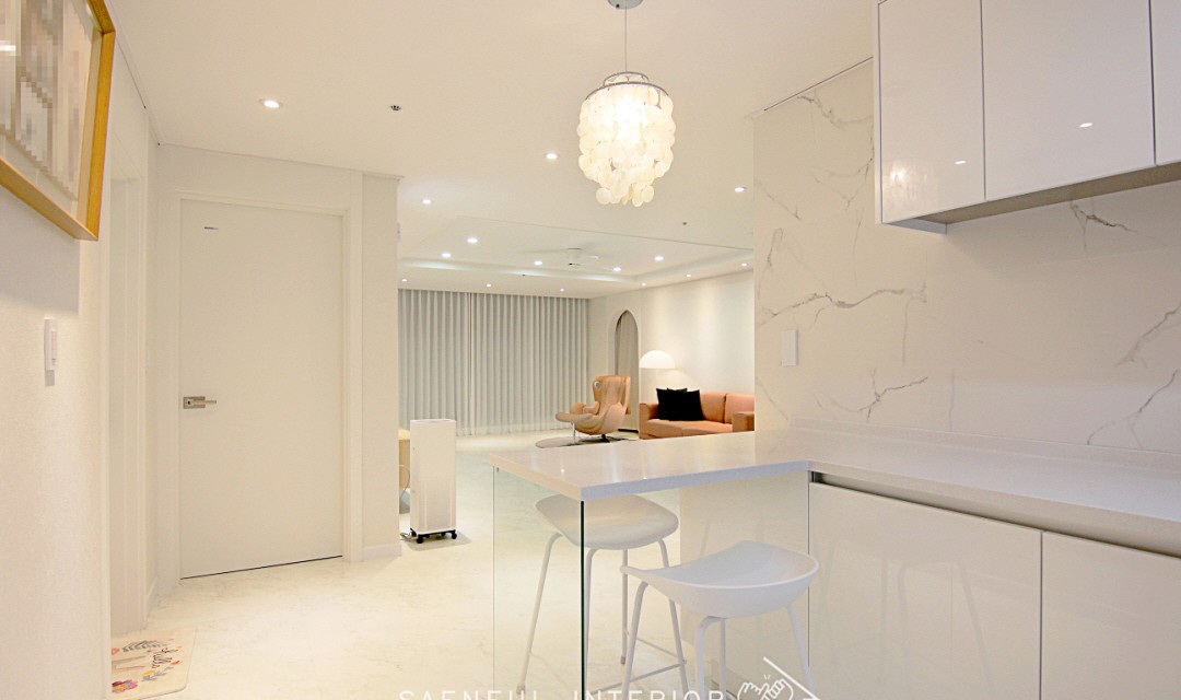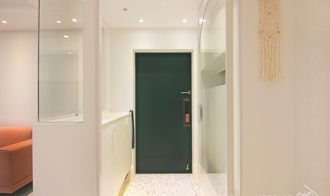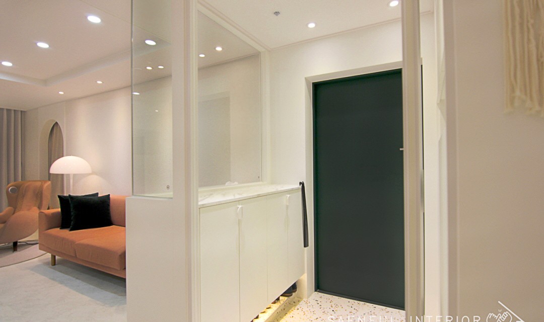 #모던 #트렌디 #러블리 #럭셔리 #감성 #유니크 #중문시공 #타일시공 #테라조타일 #폴리싱타일 #실링팬 #인테리어조명 #매립조명 #간접조명 #확장시공 #아치형 #30평 #아파트인테리어