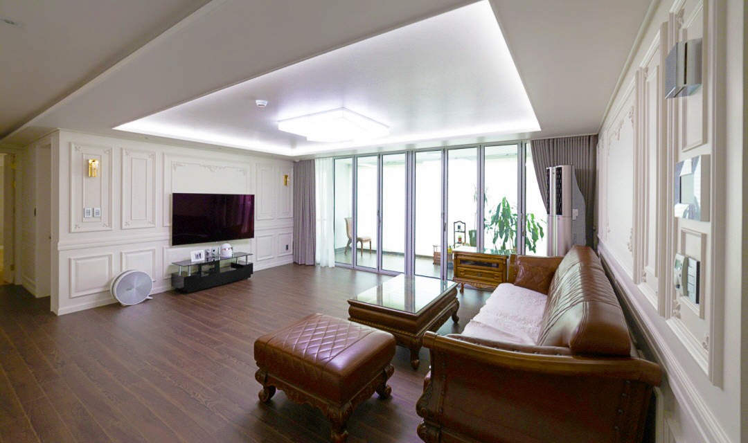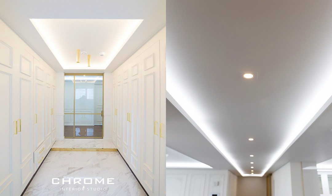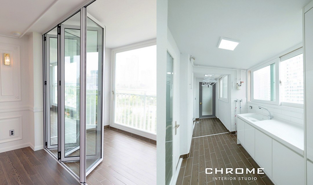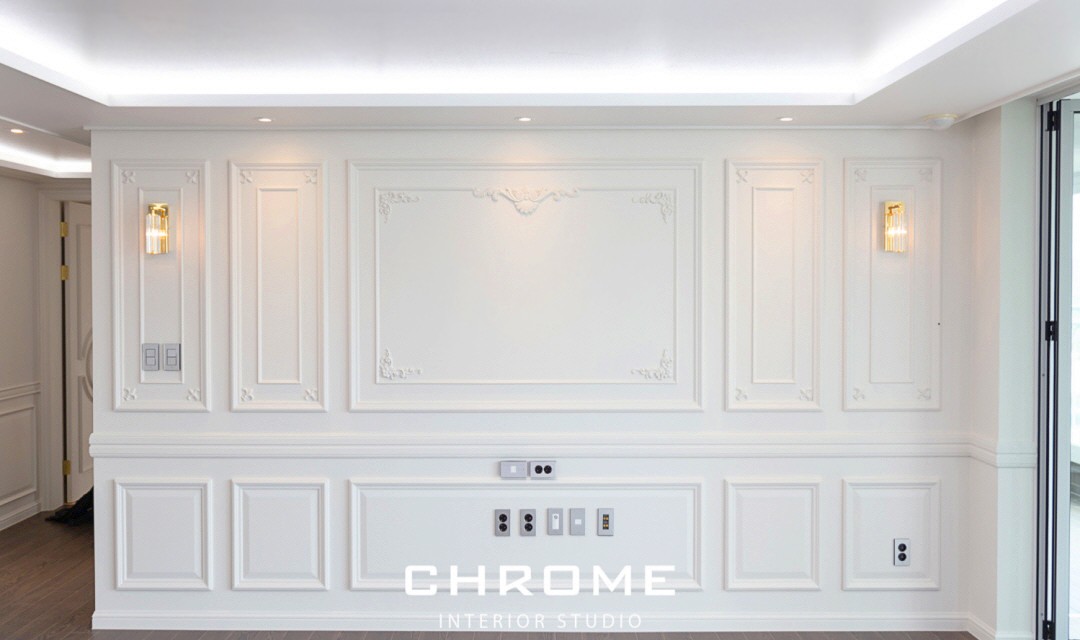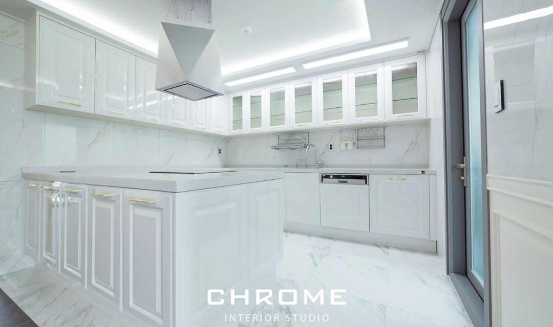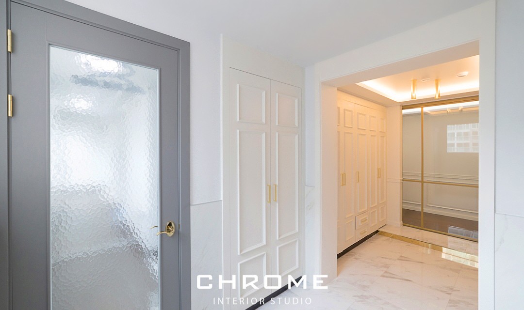 #트렌디 #클래식 #전통 #유니크 #개성 #럭셔리 #중문시공 #슬림슬라이딩 #폴딩도어 #타일시공 #비앙코타일 #폴리싱타일 #웨인스코팅 #인테리어조명 #매립조명 #간접조명 #벽등 #히노끼도어 #골드 #화이트 #60평 #아파트인테리어