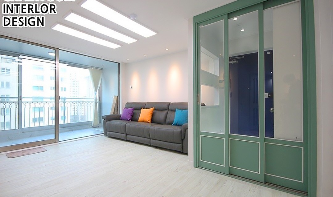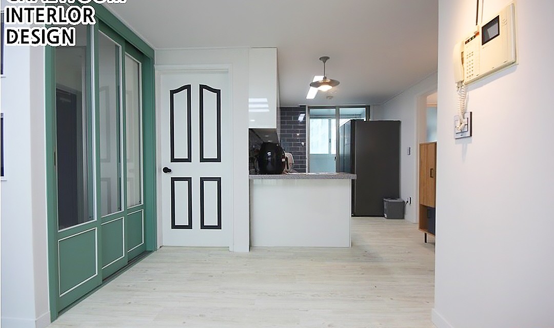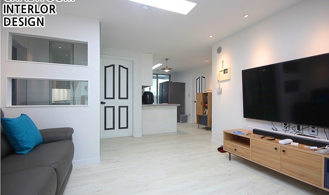 #모던 #네추럴 #트렌디 #부분시공 #중문시공 #웨인스코팅 #3중연동 #인테리어조명 #간접조명 #타일시공 #테라조타일 #폴리싱타일 #실크벽지 #20평 #아파트인테리어