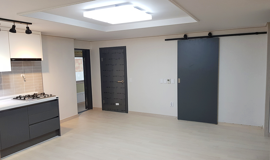 #모던 #트렌디 #네추럴 #중문시공 #3중연동 #타일시공 #포세린타일 #맞춤가구 #고벽돌인테리어 #주택인테리어