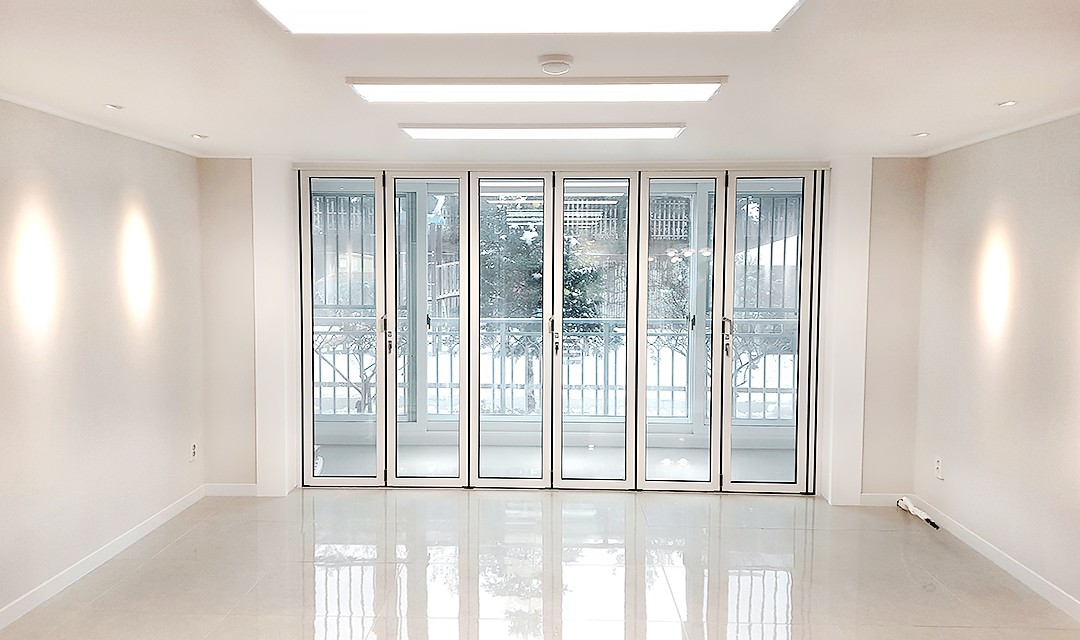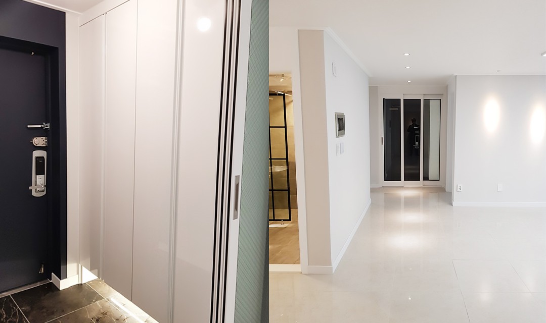 #고급 #심플 #럭셔리 #화사한 #깨끗한 #화이트 #그레이 #중문 #폴딩도어 #폴리싱타일 #레일조명 #간접조명 #아파트인테리어