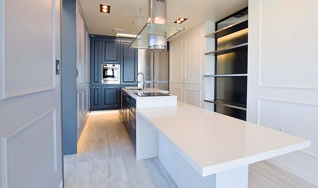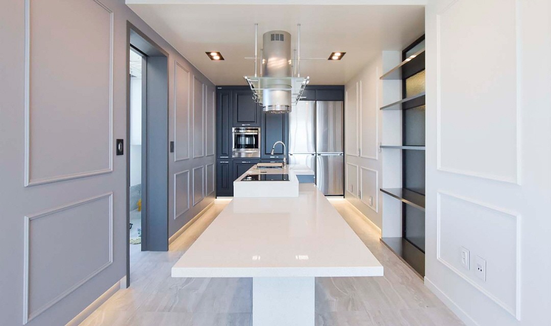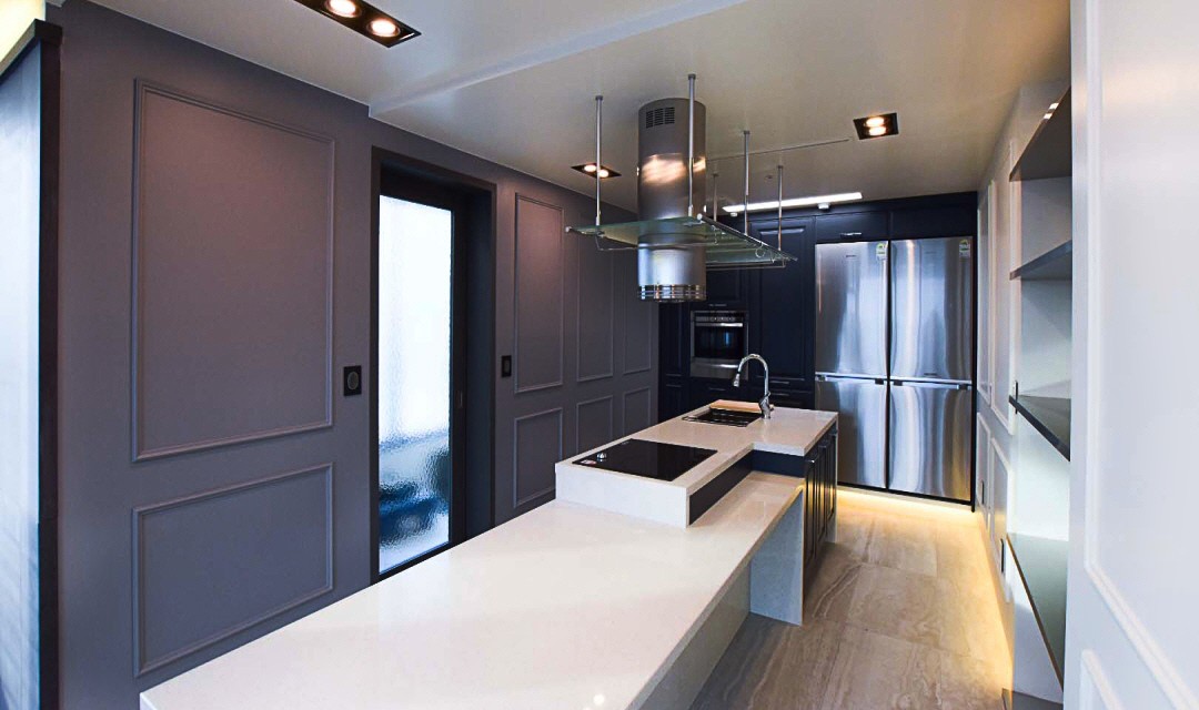 주방은 전체적인 벽면을 웨인스코팅으로 제작하여도장 마감을 진행하였습니다.