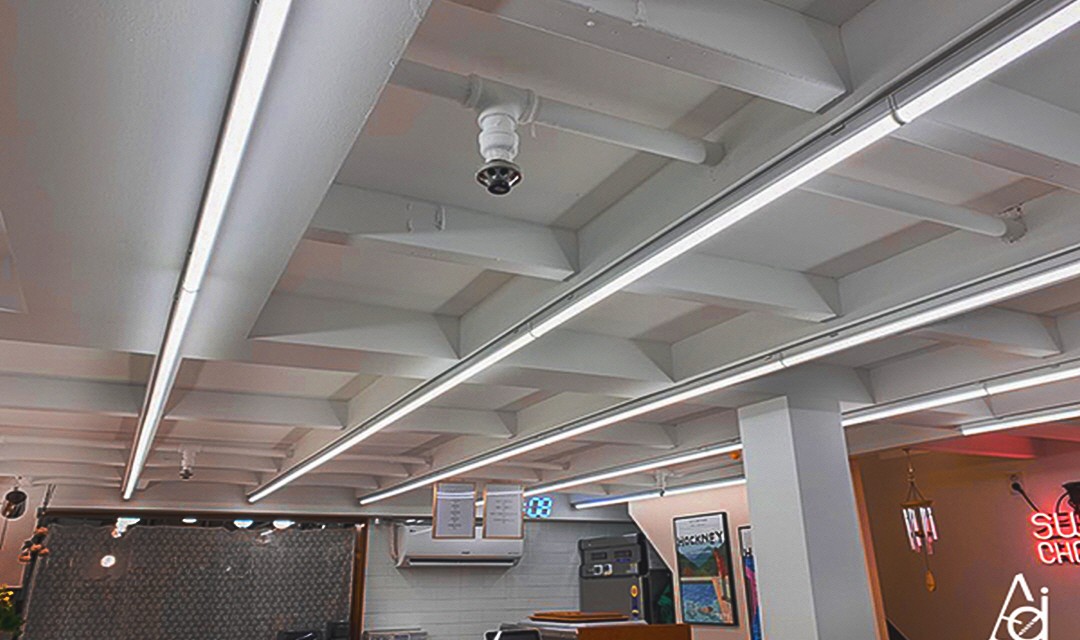 T5 조명을 일자로 설치하여 최대한 높고 넓어 보일 수 있도록 하였습니다.