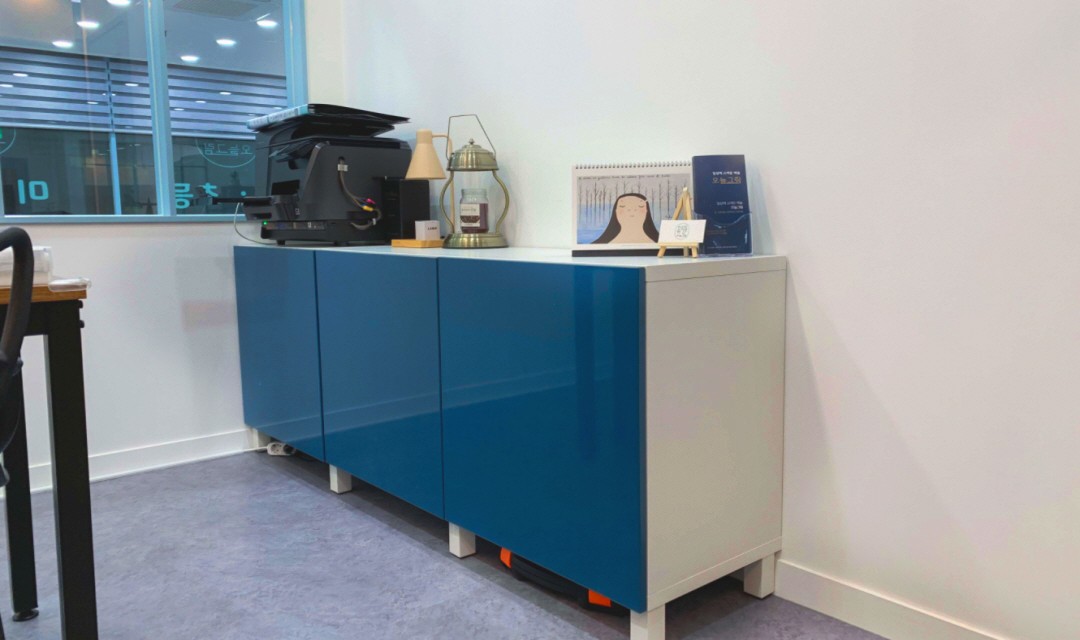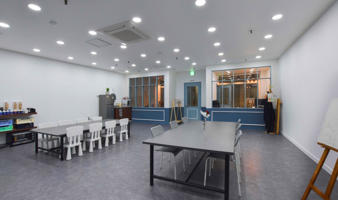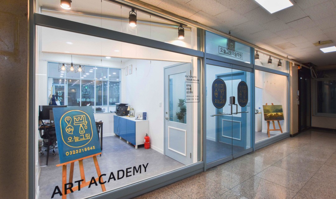 깔끔한 이미지를 주는 미술학원, White & Blue의 조화를 이룹니다.