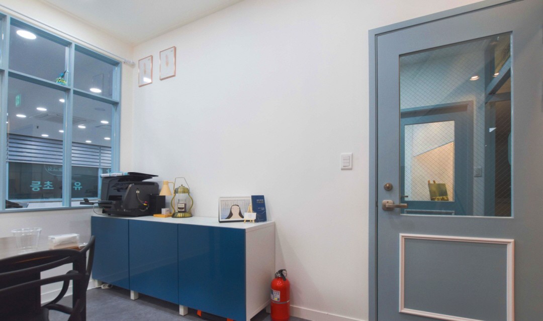 #심플 #모던 #클래식 #웨인스코팅 #화이트 #블루 #상가인테리어 #미술학원인테리어