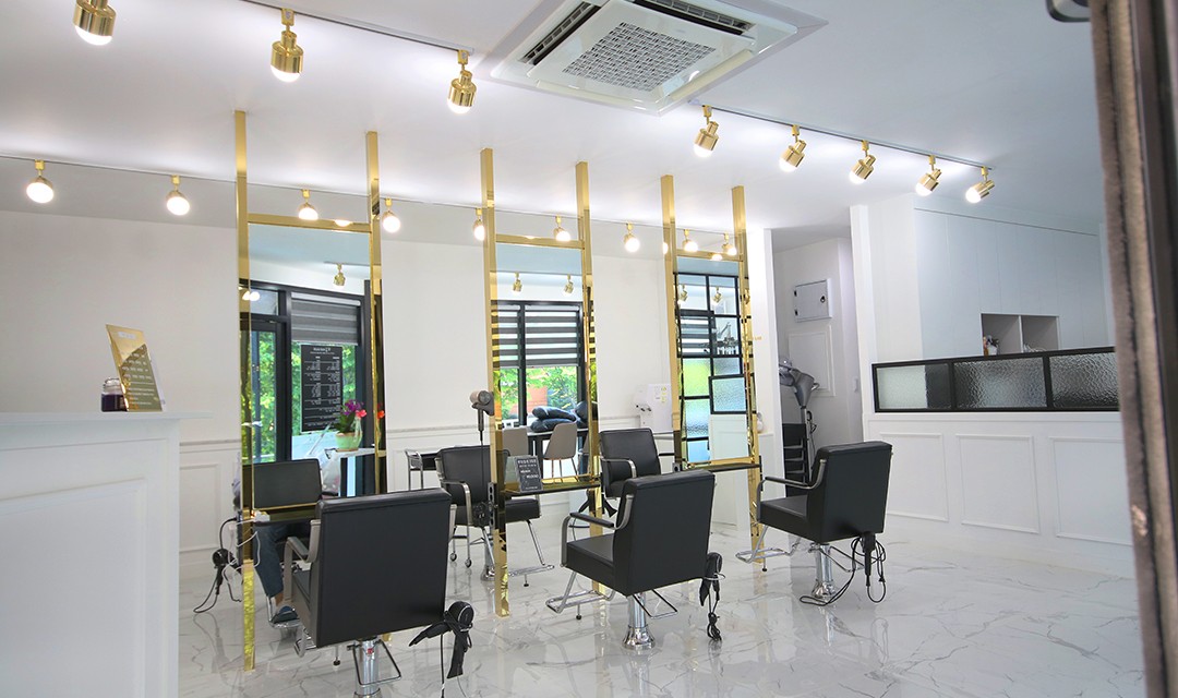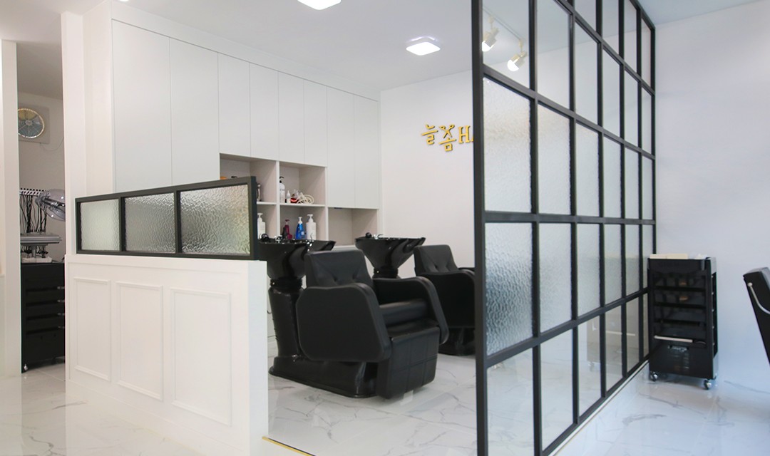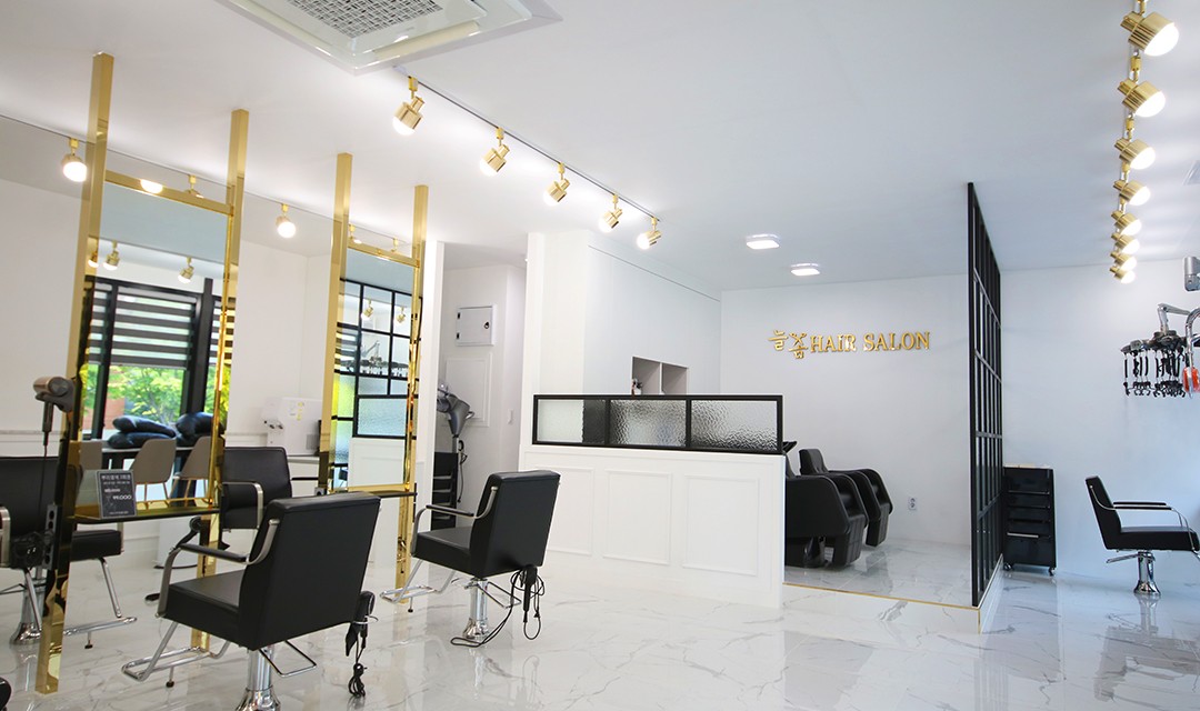 #유니크 #트렌디 #세련 #럭셔리 #블랙 #골드 #화이트 #비앙코타일 #폴리싱타일 #레일전구 #포인트조명 #가벽설치 #상가인테리어 #미용실인테리어