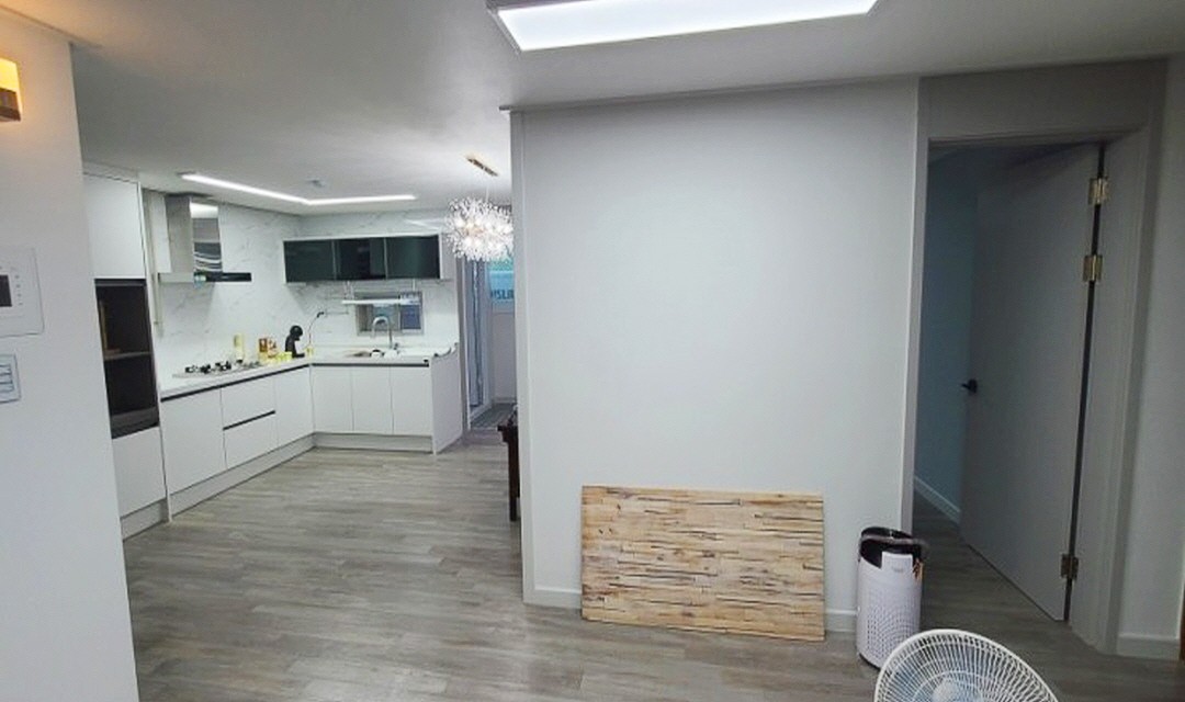 #모던 #트렌디 #심플 #네추럴 #중문시공 #3중연동 #인테리어조명 #벽등 #간접조명 #타일시공 #패턴타일 #비앙코타일 #폴리싱타일 #강마루시공 #실크벽지 #폴딩도어 #30평 #아파트인테리어