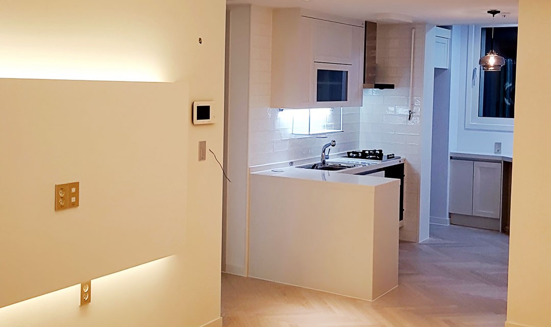 #모던 #세련 #심플 #트렌디 #화이트 #파스텔블루 #헤링본마루 #화이트타일 #블랙포인트타일 #아트월 #20평 #아파트인테리어
