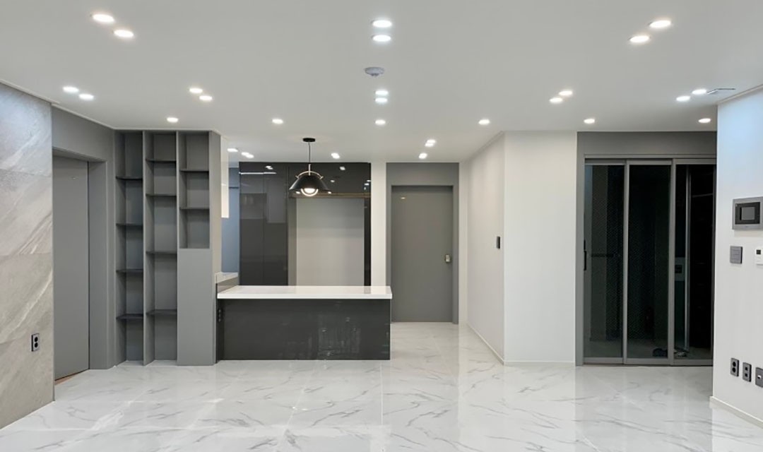 #모던 #고급 #천장내림시공 #그레이 #블랙 #중문 #포켓도어 #등박스 #간접조명 #아일랜드식탁 #30평 #아파트인테리어