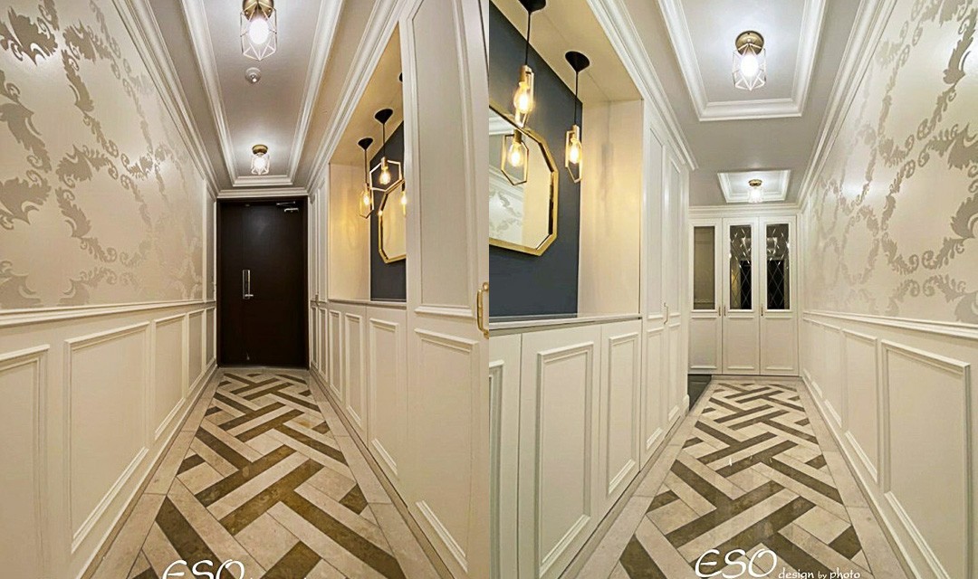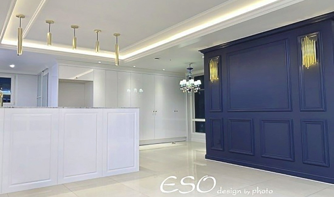 #클래식 #럭셔리 #감성 #타일시공 #폴리싱타일 #포쉐린타일 #대리석 #웨인스코팅 #간접조명 #인테리어조명 #벽등 #화이트 #골드 #네이비 #슬림폴딩도어 #50평 #아파트인테리어