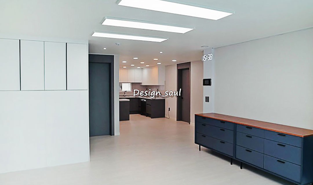 #모던 #세련 #심플 #깔끔한 #거실전체확장 #화이트 #네이비 #중문 #3연동초슬림 #양면수납장 #매립조명 #30평 #아파트인테리어