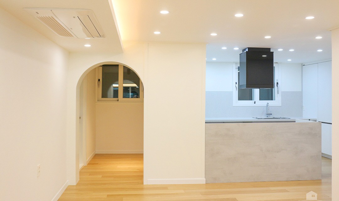 #모던 #유니크 #심플 #트렌디 #중문시공 #슬림슬라이딩도어 #타일시공 #포세린타일 #테라조타일 #인테리어조명 #매립조명 #간접조명 #아치포인트 #확장시공 #구조변경 #화이트 #50평 #아파트인테리어