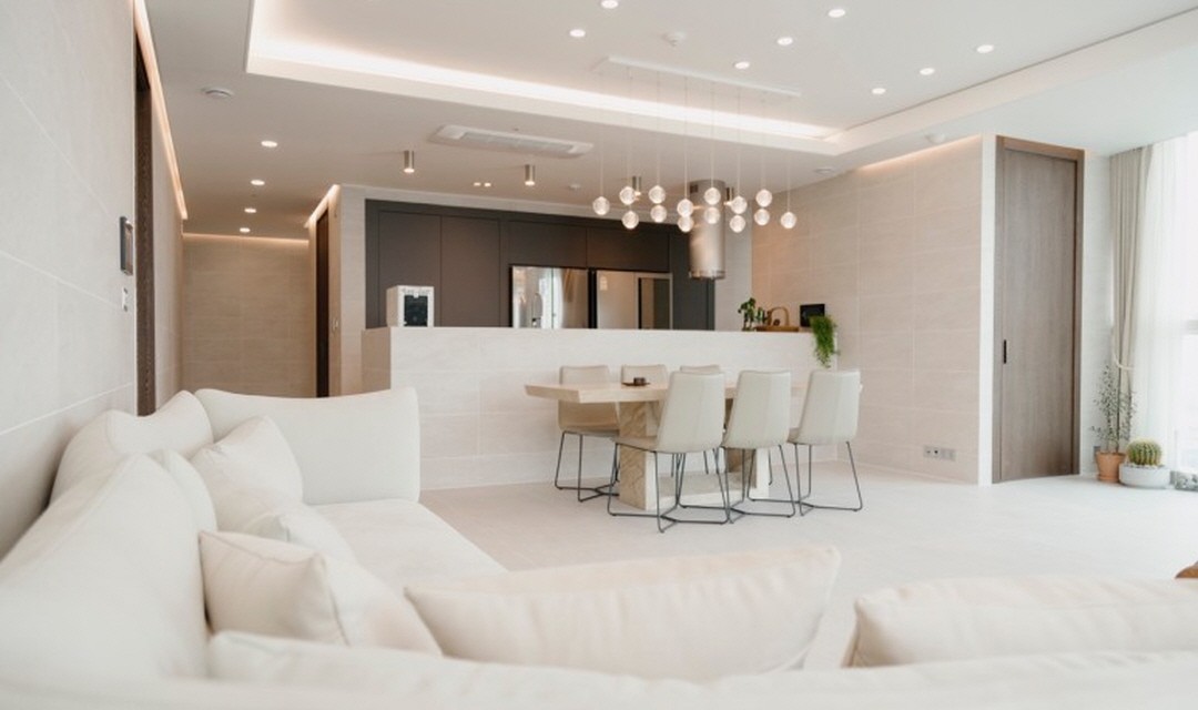 #트렌디 #모던 #감성 #럭셔리 #유니크 #호텔 #중문시공 #타일시공 #실링팬 #인테리어조명 #간접조명 #60평 #아파트인테리어 #상가인테리어