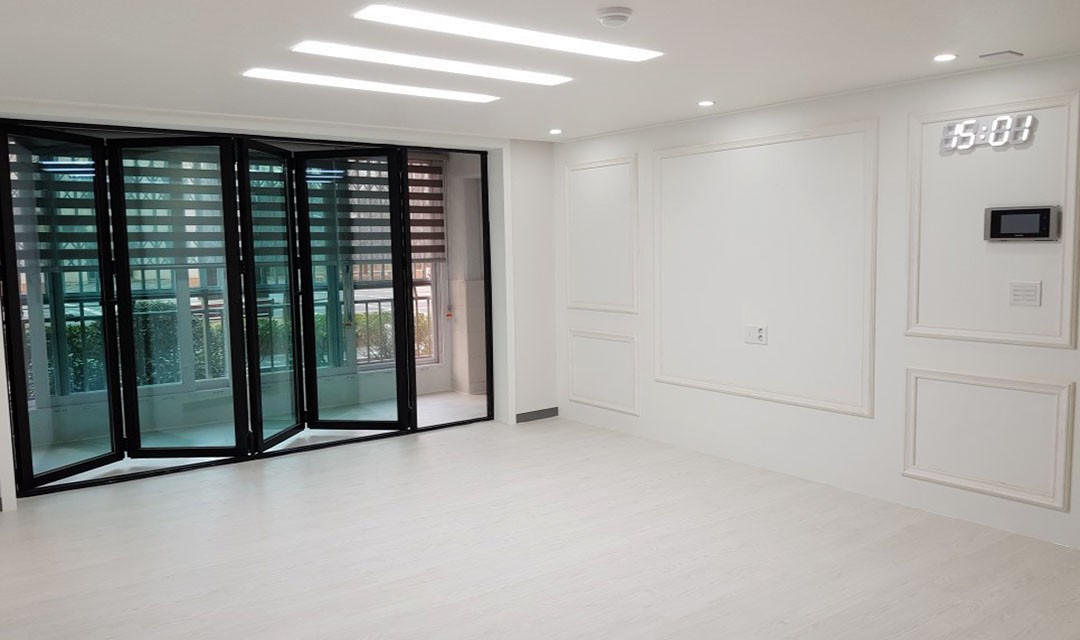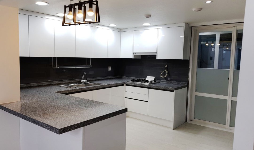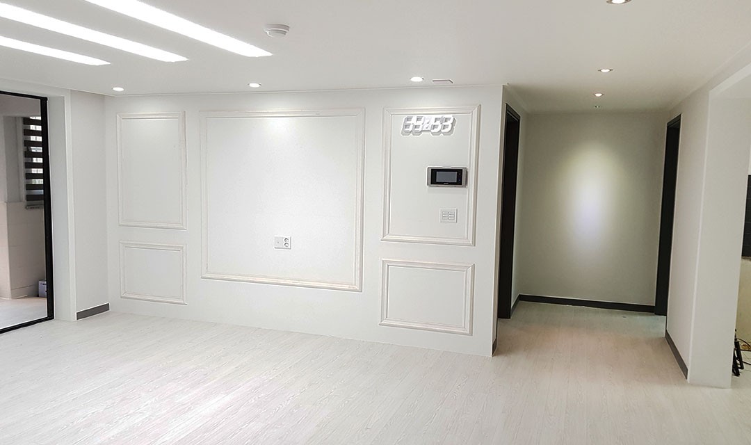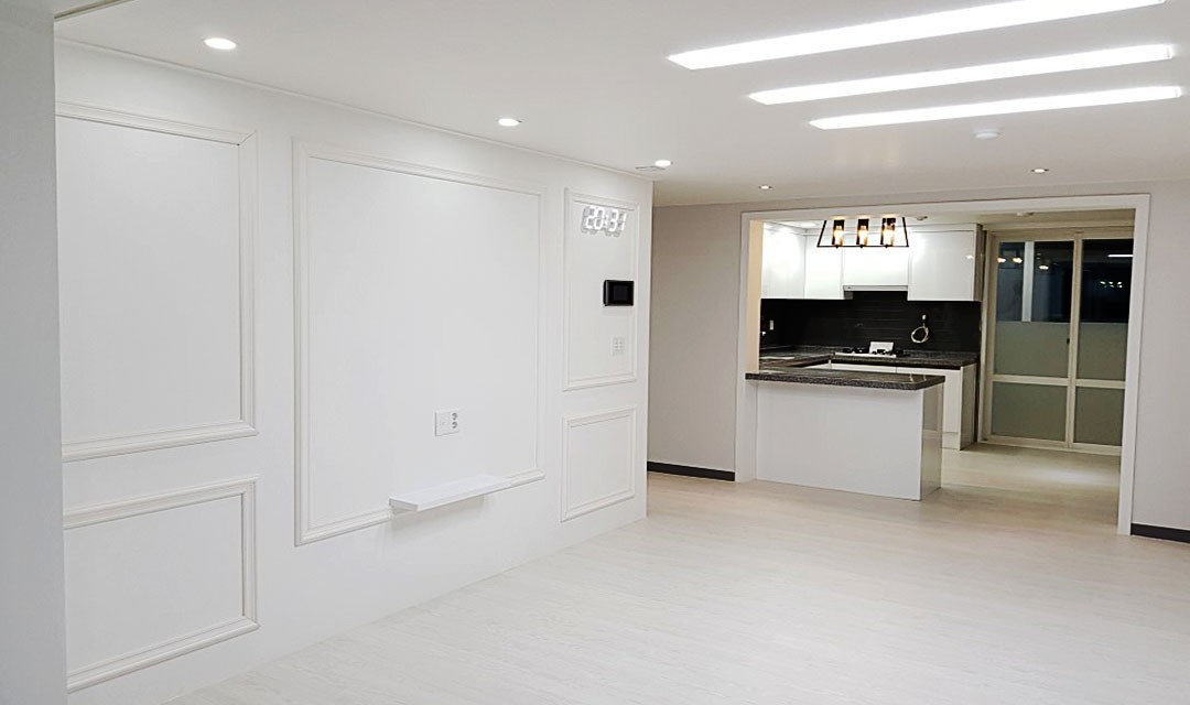 #심플 #세련 #화이트 #블랙 #웨인스코팅 #컬러포인트도배 #시트지리폼 #폴딩도어 #아일랜드식탁 #매립조명 #레일조명 #30평 #아파트인테리어