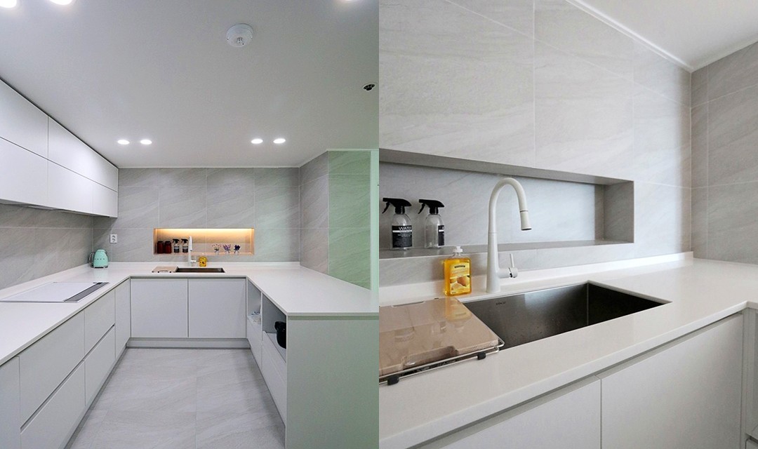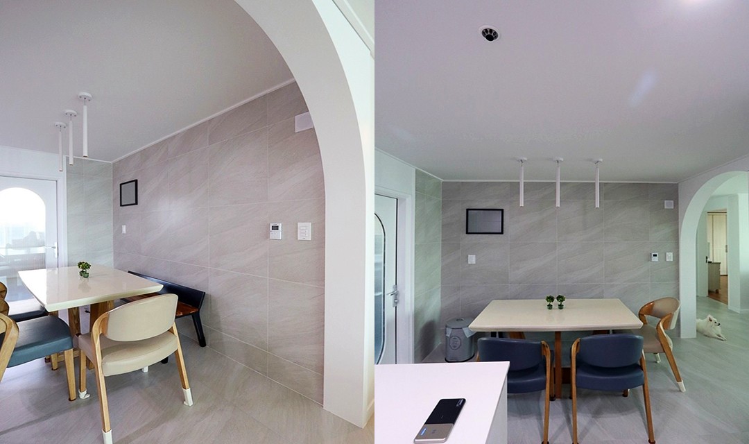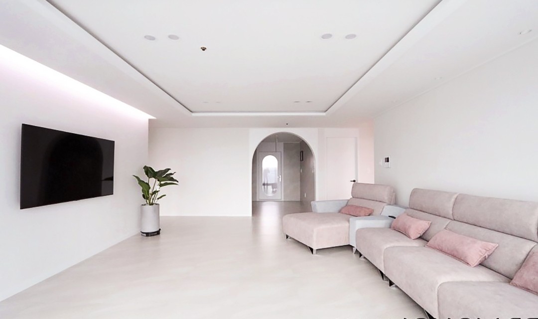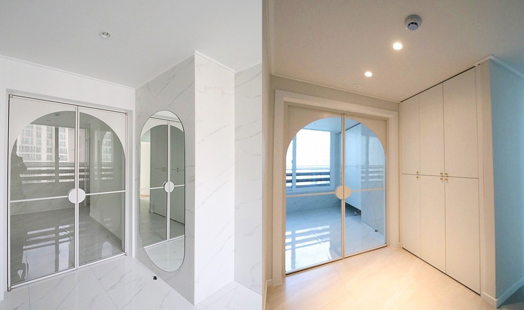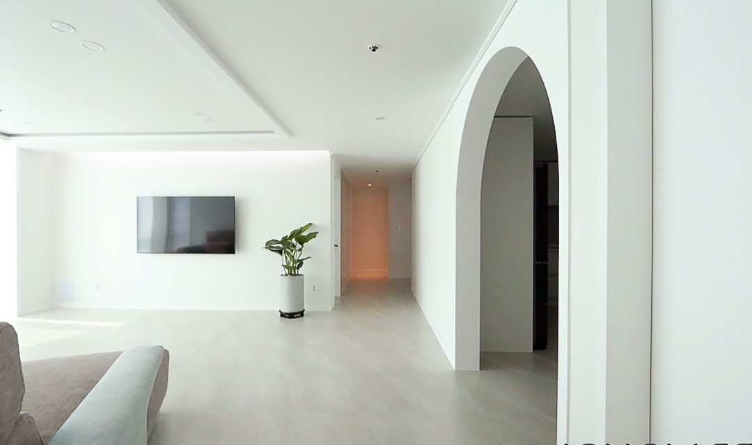 #트렌디 #세련 #모던 #현대적 #럭셔리 #화이트 #포세린타일 #비앙코타일 #폴리싱타일 # #매입조명 #다운라이트조명 #아트월 #아치형도어 #공간분리 #필름시공 #매립조명 #간접조명 #40평 #아파트인테리어
