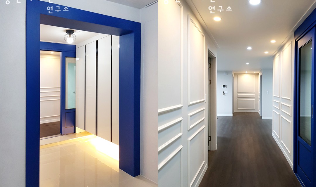 #고급 #모던 #묵직한 #웨인스코팅 #네이비 #오크 #화이트 #그린 #핑크 #폴딩도어 #매립조명 #40평 #빌라인테리어 #주택인테리어