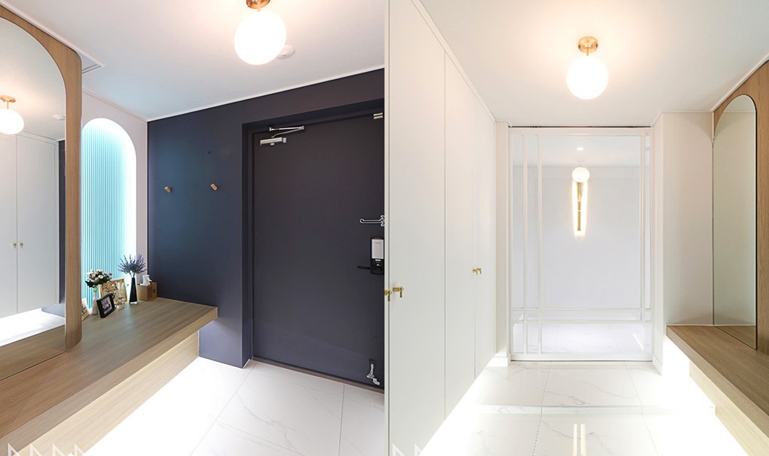 #모던 #심플 #럭셔리 #트렌드 #중문시공 #타일시공 #필름시공 #인테리어조명 #매립조명 #화이트 #우드 #30평 #아파트인테리어