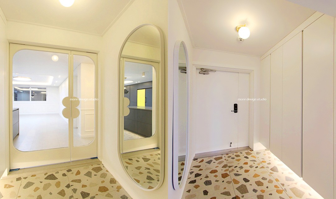 #모던 #트렌디 #클래식 #네추럴 #럭셔리 #타일시공 #테라조타일 #패턴타일 #중문시공 #인테리어조명 #매립조명 #간접조명 #웨인스코팅 #쉐브른마루 #20평 #주택인테리어