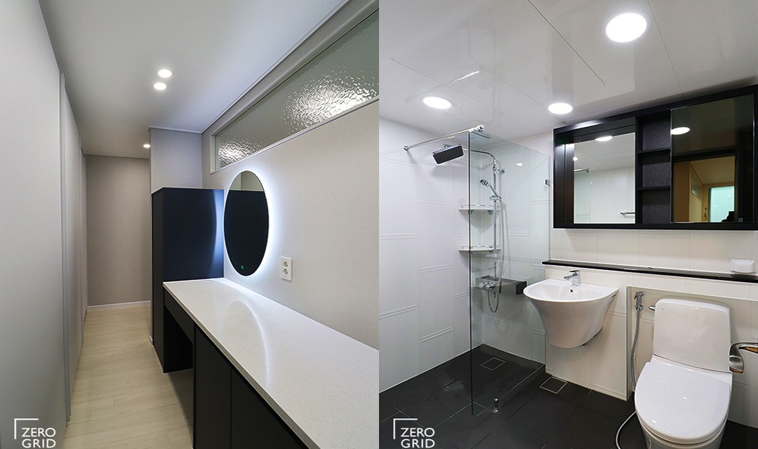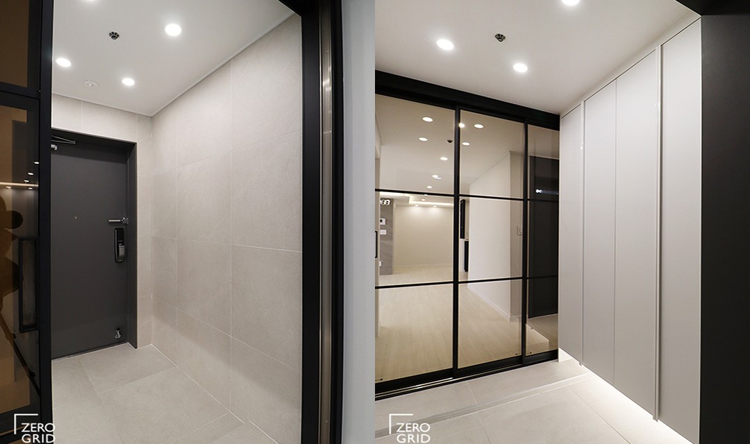 #심플 #트렌디 #모던 #시크 #럭셔리 #중문시공 #3중연동 #타일시공 #폴리싱타일 #매립조명 #간접조명 #가벽설치 #화이트 #블랙 #그레이 #40평 #아파트인테리어