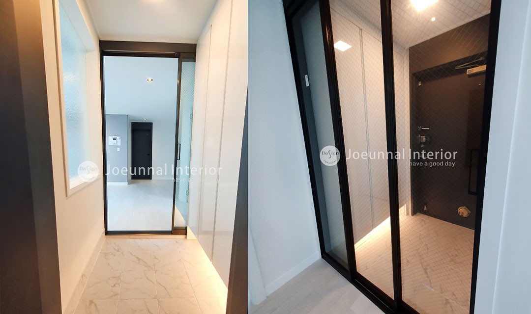 #모던 #심플 #깔끔한 #고급 #화이트 #그레이 #중문 #3연동슬라이드중문 #화이브마블 #매립조명 #펜던트조명 #아파트인테리어