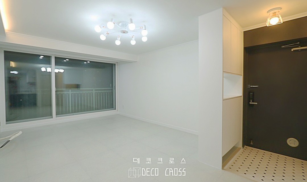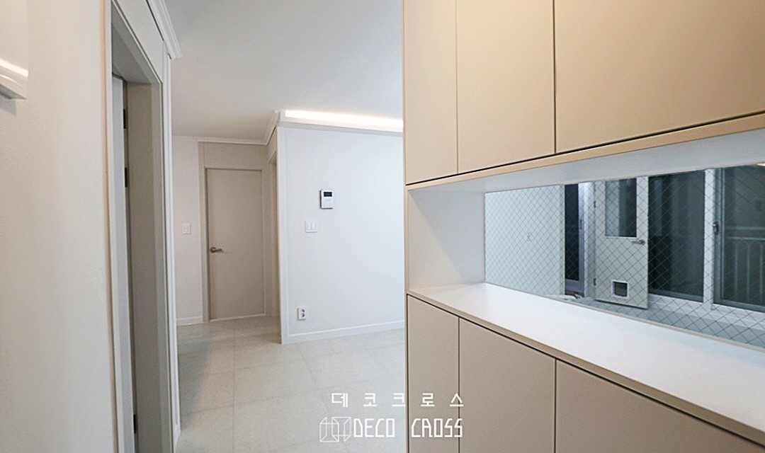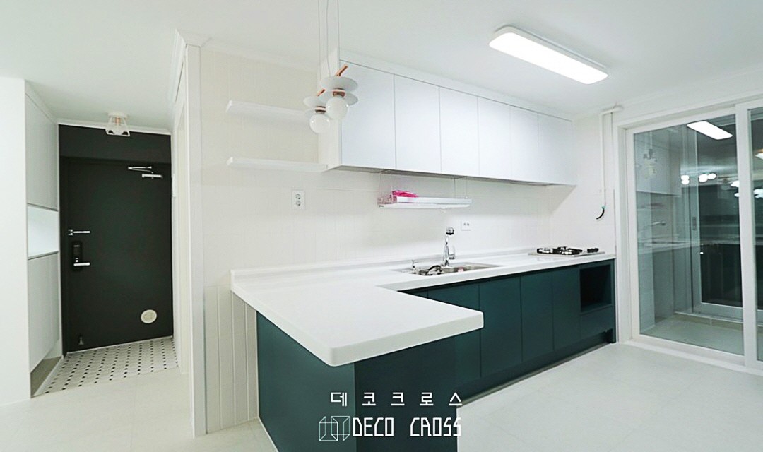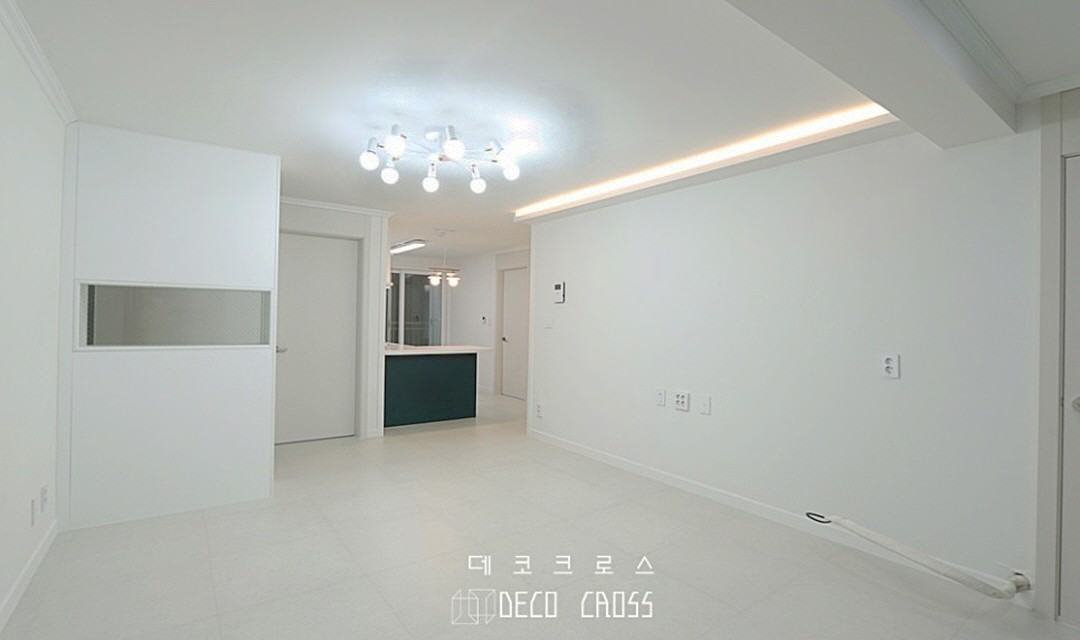 #모던 #트렌디 #네추럴 #타일시공 #패턴타일 #인테리어조명 #간접조명 #인테리어조명 #띠벽지도배 #캣도어 #딥그린 #화이트 #20평 #아파트인테리어 #반려동물인테리어