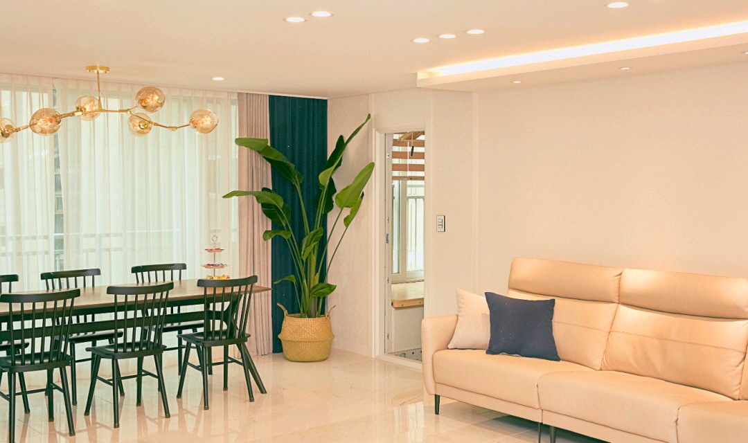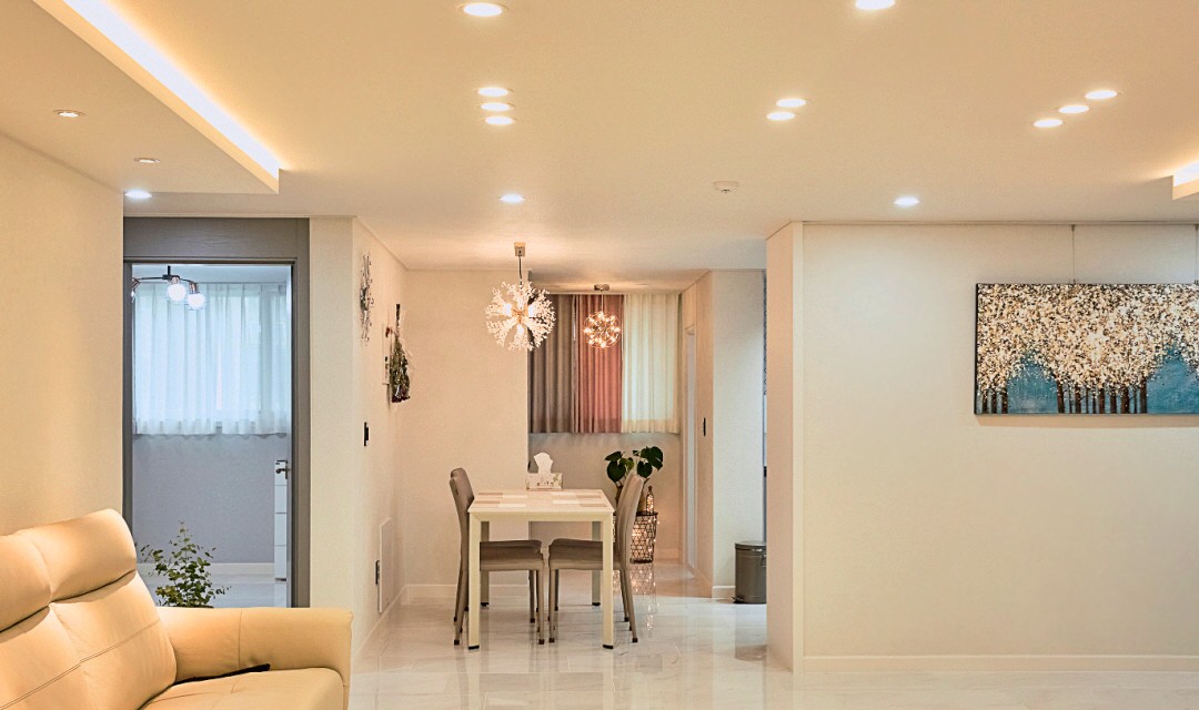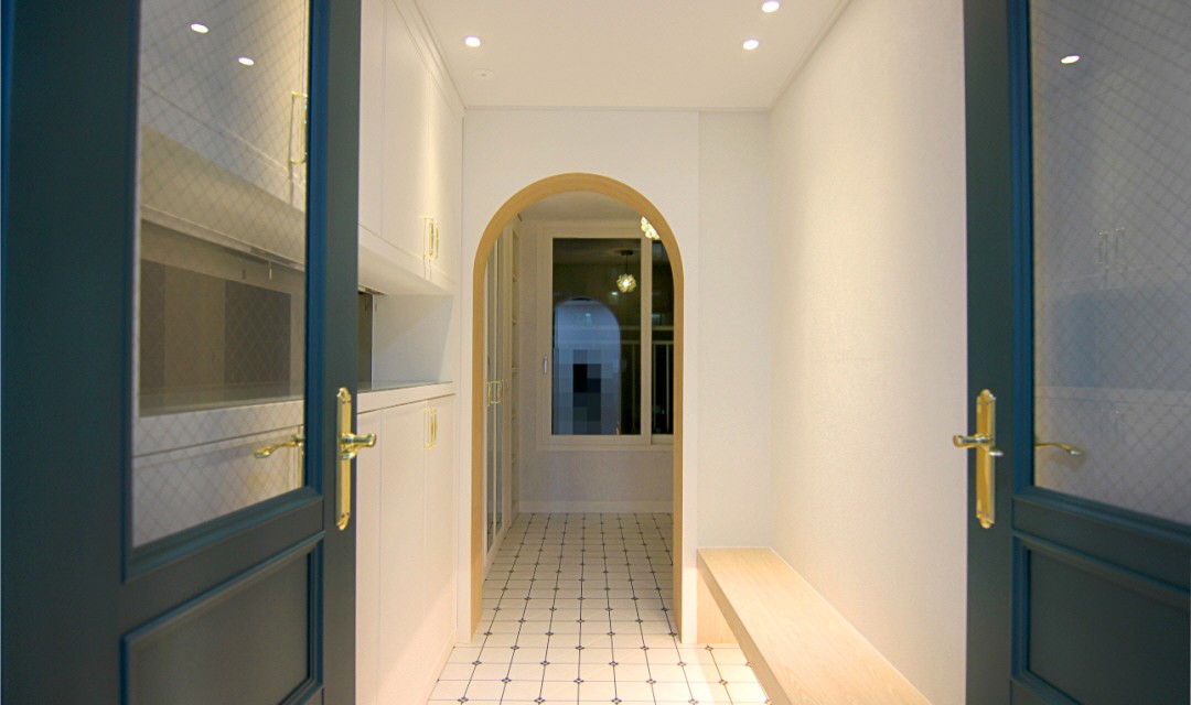 #모던 #트렌디 #클래식 #유니크 #럭셔리 #타일시공 #패턴타일 #대리석바닥 #중문시공 #아치포인트 #웨인스코팅 #간접조명 #인테리어조명 #비비드컬러 #40평 #아파트인테리어