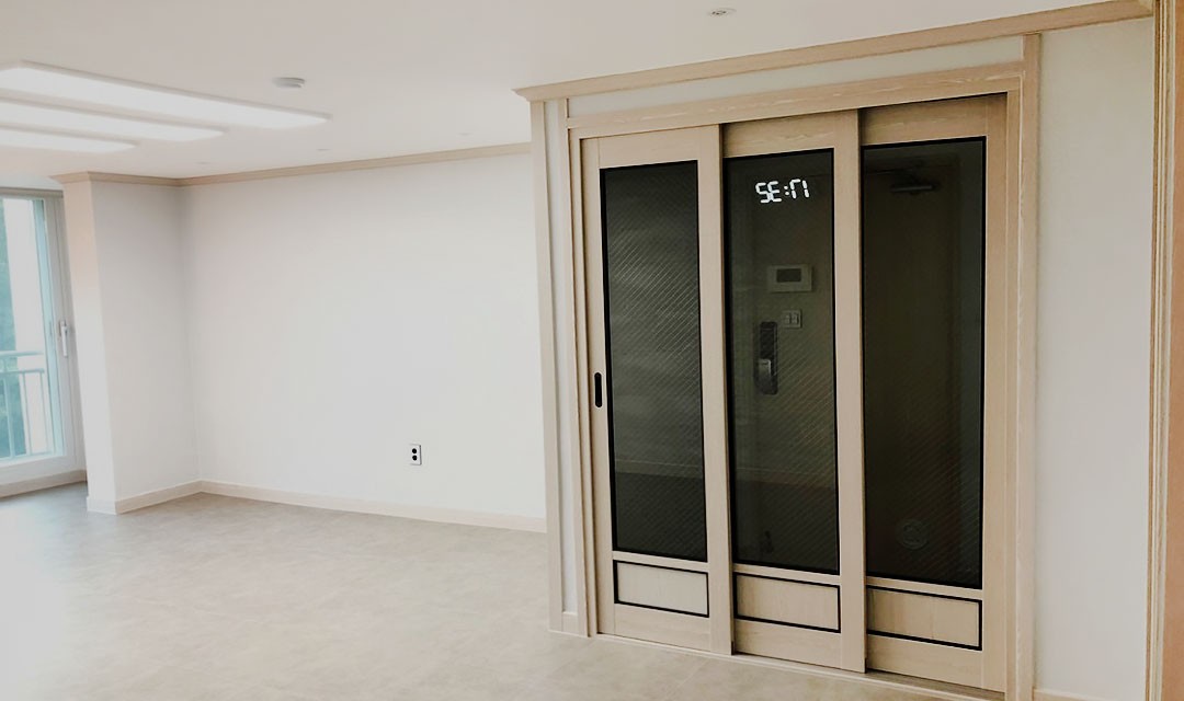 #모던 #내추럴 #세련 #편안한 #몰딩 #우드 #화이트 #라이트브라운 #중문 #3연동슬라이딩도어 #슬림조명 #매립조명 #30평 #아파트인테리어 #감천인테리어