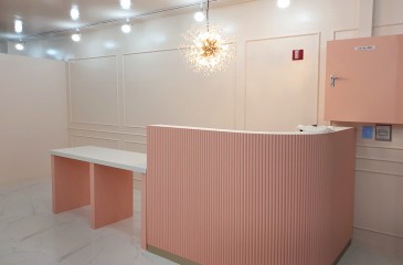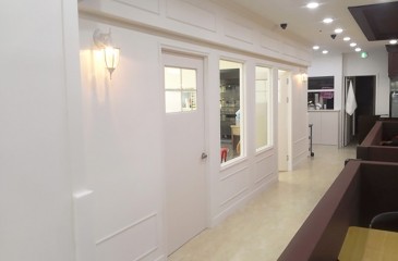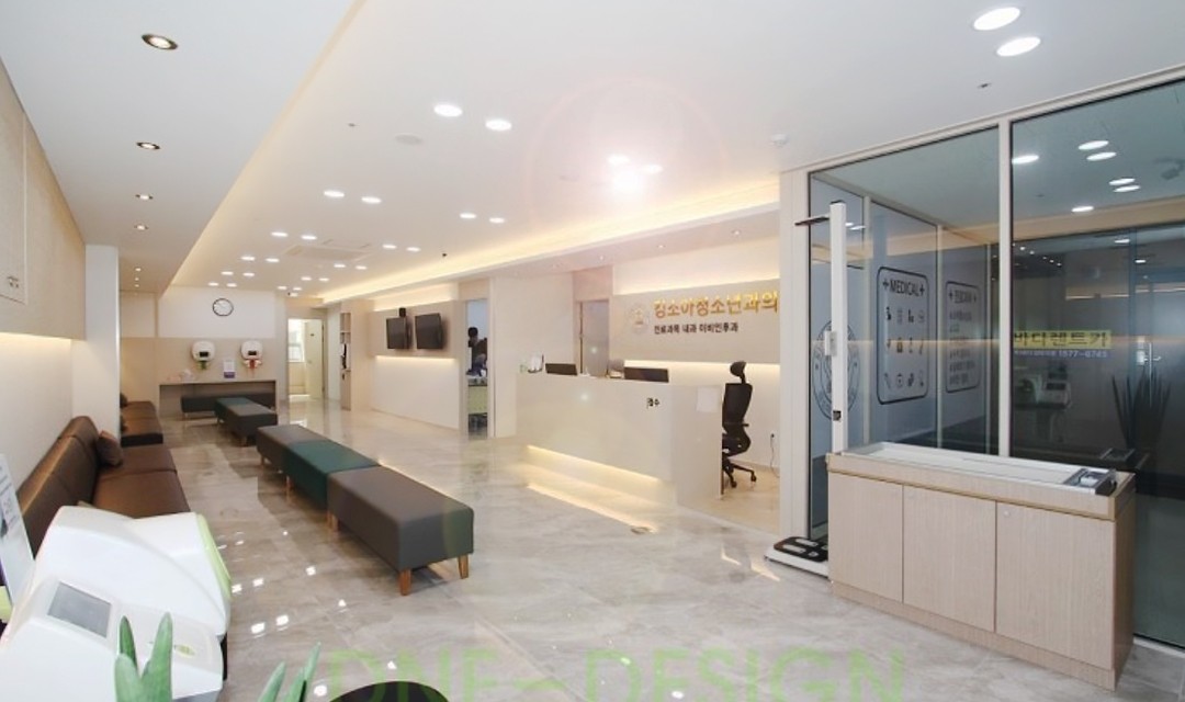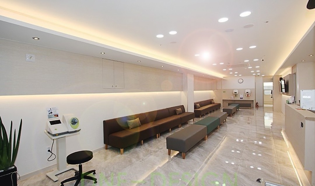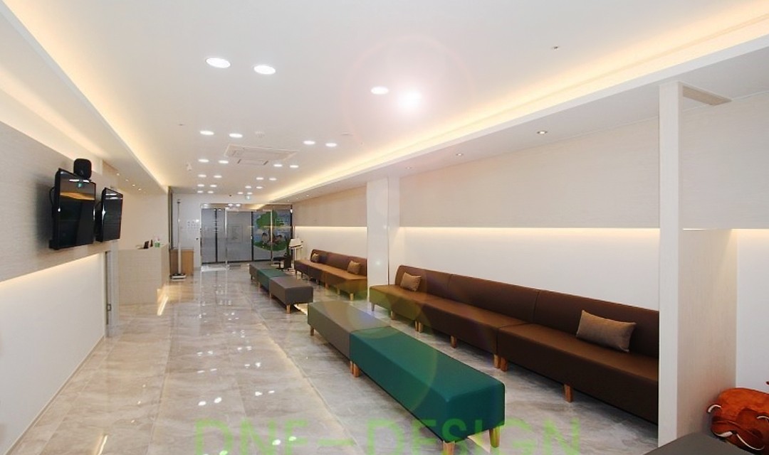 #심플 #노멀 #개방감 #차분한 #실크도배 #화이트오크 #간접조명 #매립조명 #폴리싱타일 #데코타일 #상가인테리어 #병원인테리어