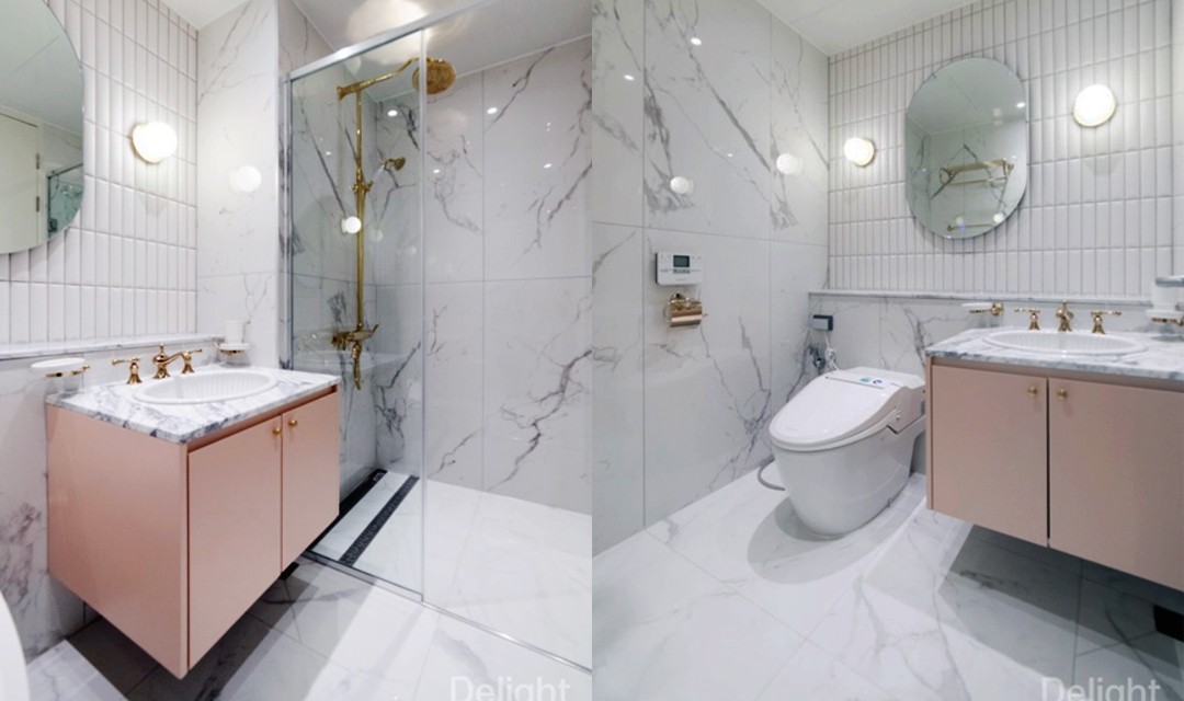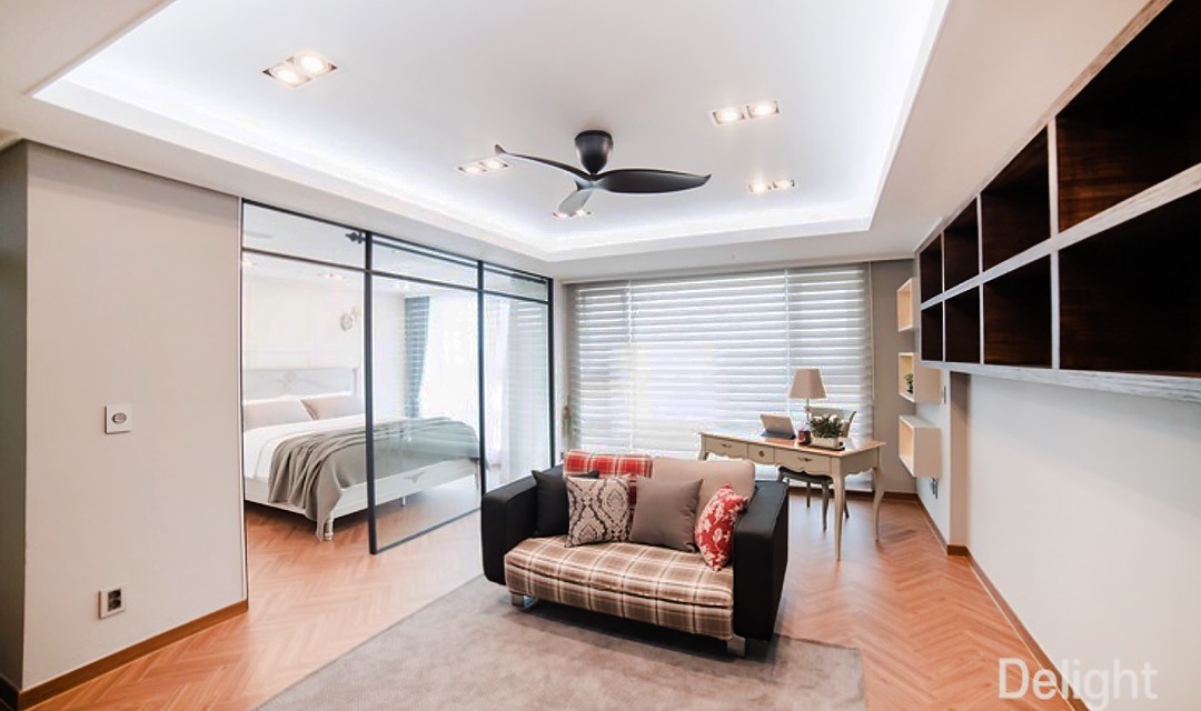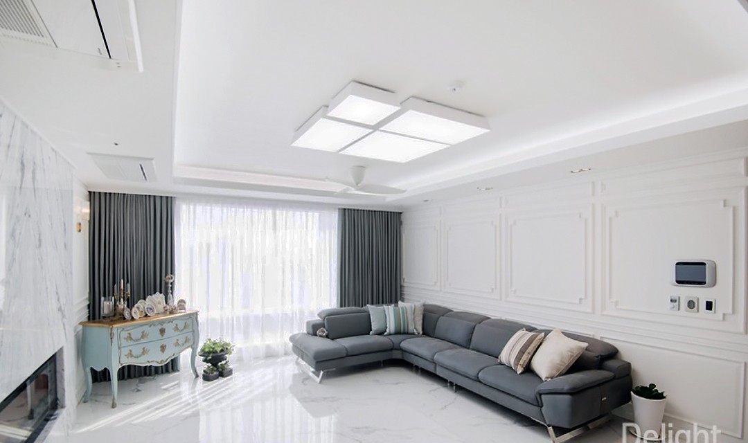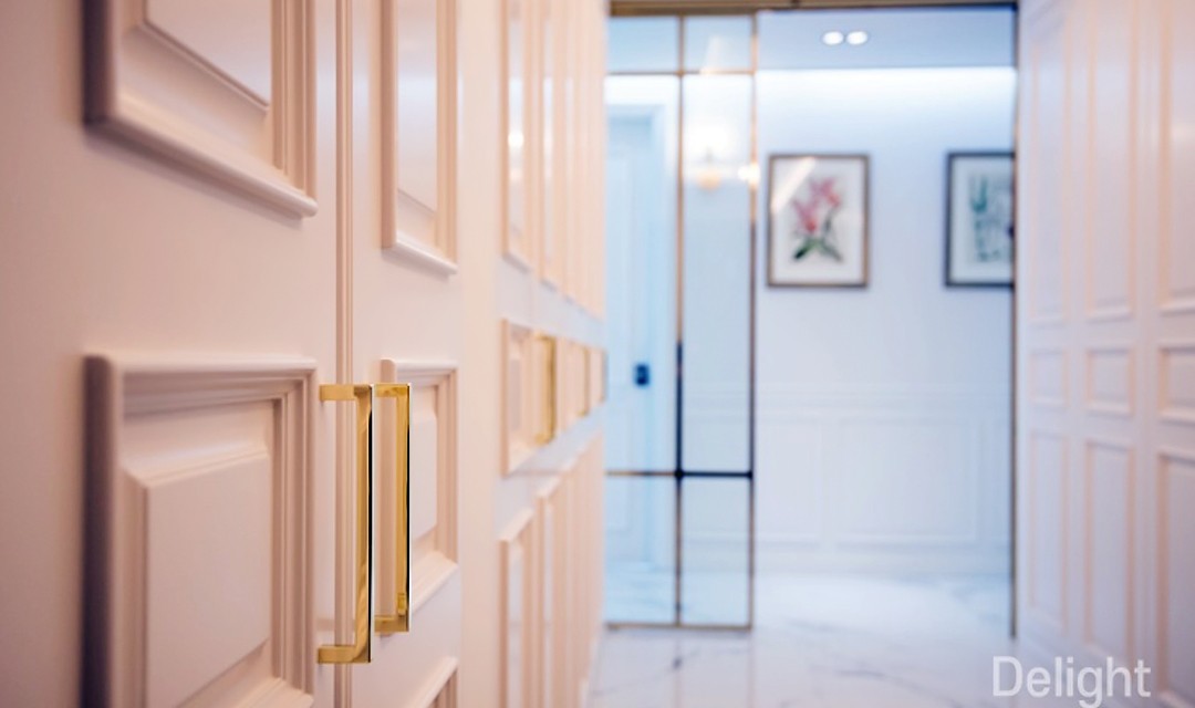 #세미클래식 #모던클래식 #고급 #심플 #가구제작 #화이트 #브라운 #헤링본마루 #폴리싱타일 #간접조명 #50평 #아파트인테리어