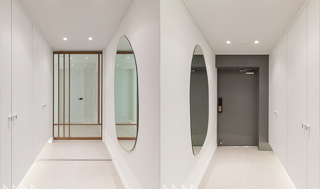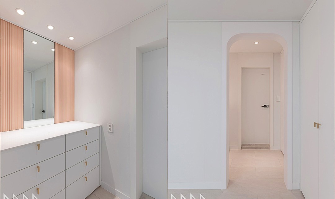 #네추럴 #트렌디 #모던 #유니크 #감성 #중문시공 #슬림도어 #타일시공 #인테리어조명 #매립조명 #간접조명 #마루시공 #화이트 #핑크 #30평 #아파트인테리어