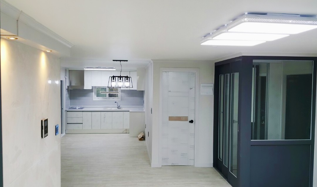#내추럴 #모던 #세련된 #트렌디 #화이트 #그레이 #중문 #3연동슬라이딩도어 #펜던트조명 #매립조명 #30평 #아파트인테리어
