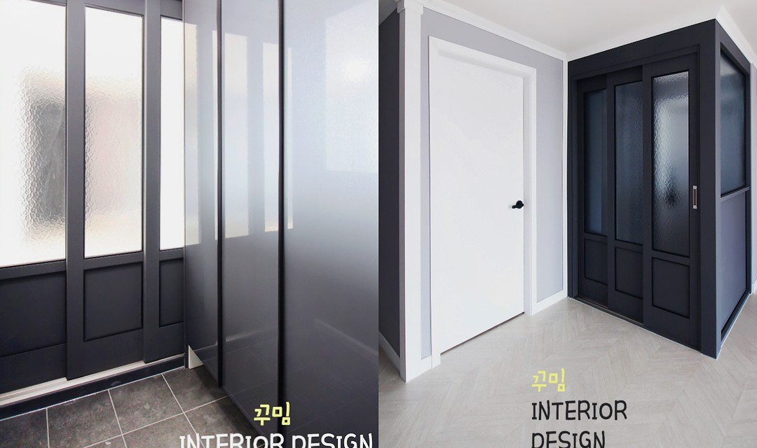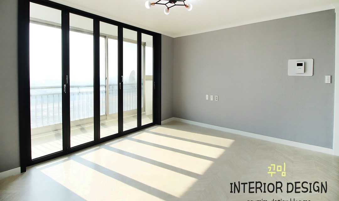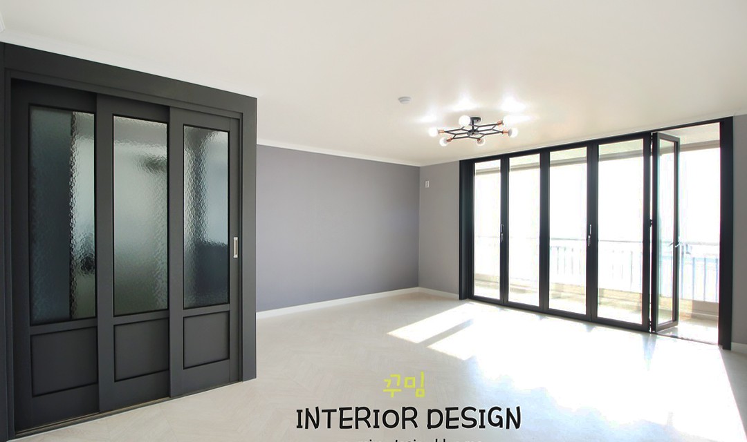 #내추럴 #모던 #베이지 #그레이 #중문 #3연동중문 #폴딩도어 #헤링본타일 #쉐르본무늬 #레일조명 #30평 #아파트인테리어