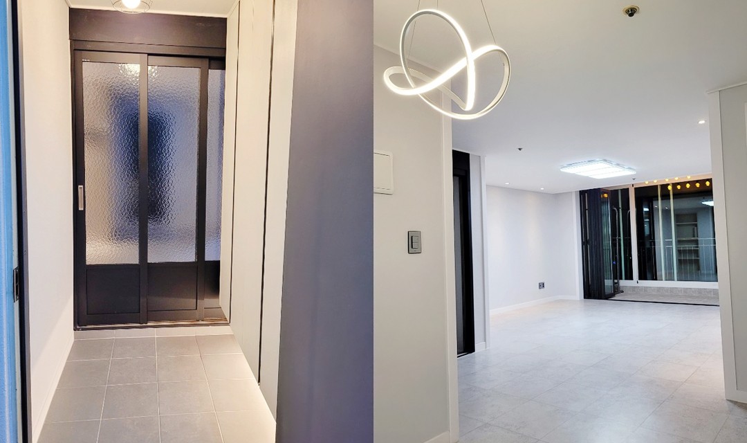 #모던 #내추럴 #세련된 #그레이 #블랙 #중문 #3연동초슬림중문 #폴딩도어 #포세린타일 #매립조명 #센서등 #간접조명 #아파트인테리어