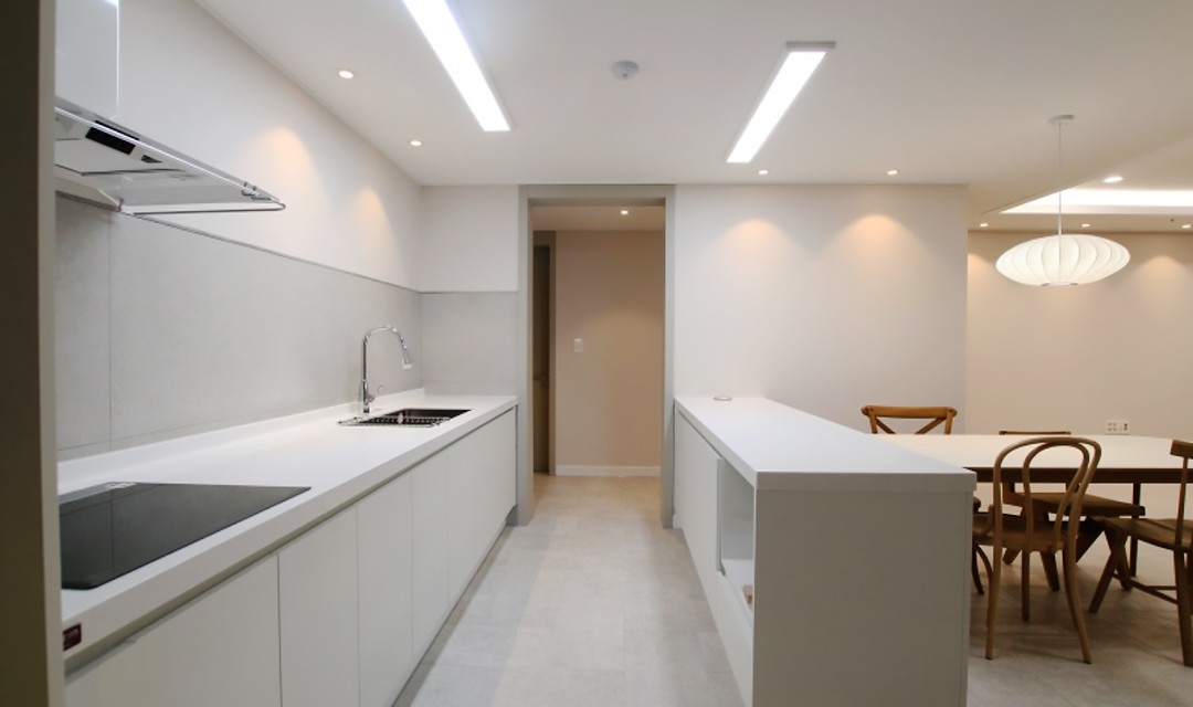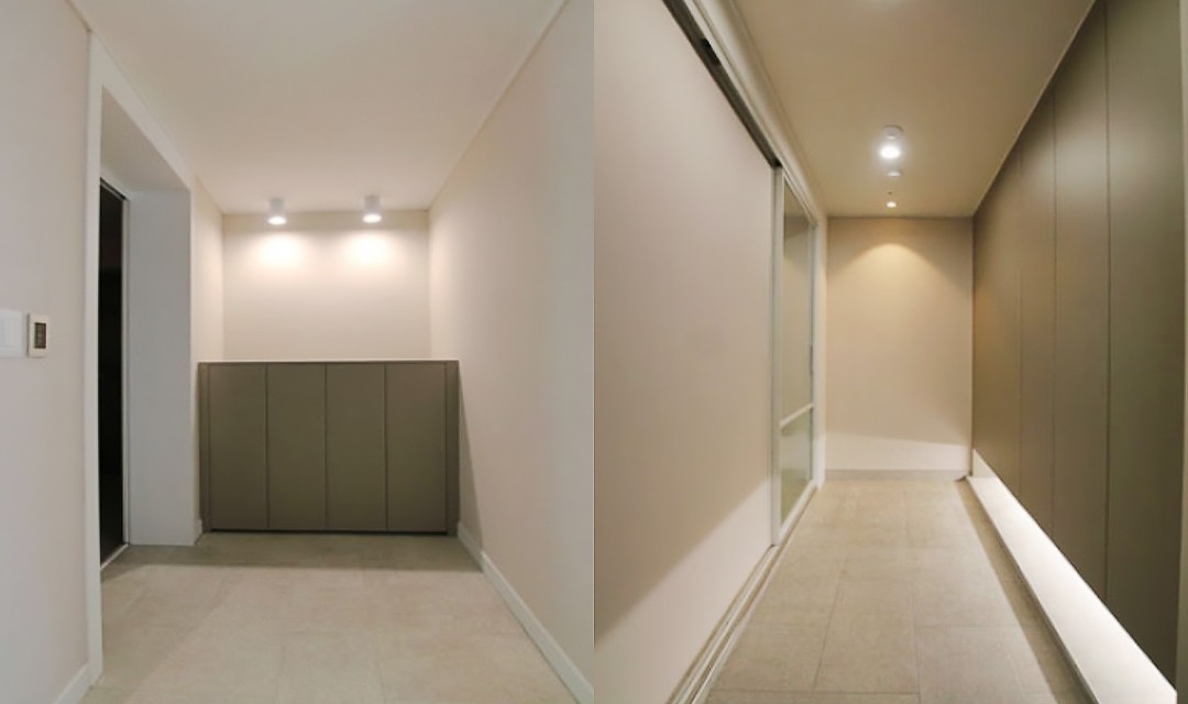 #고급 #럭셔리 #모던 #우물천장 #컬러포인트 #그레이 #화이트 #중문 #폴딩도어 #포세린타일 #매립조명 #펜던트조명 #간접조명 #30평 #아파트인테리어